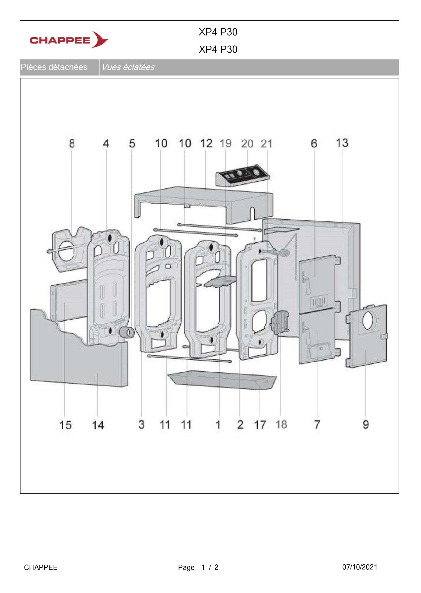 Pièces détachées contenues dans cet appareil Chaudière Chappee XP4 P30
