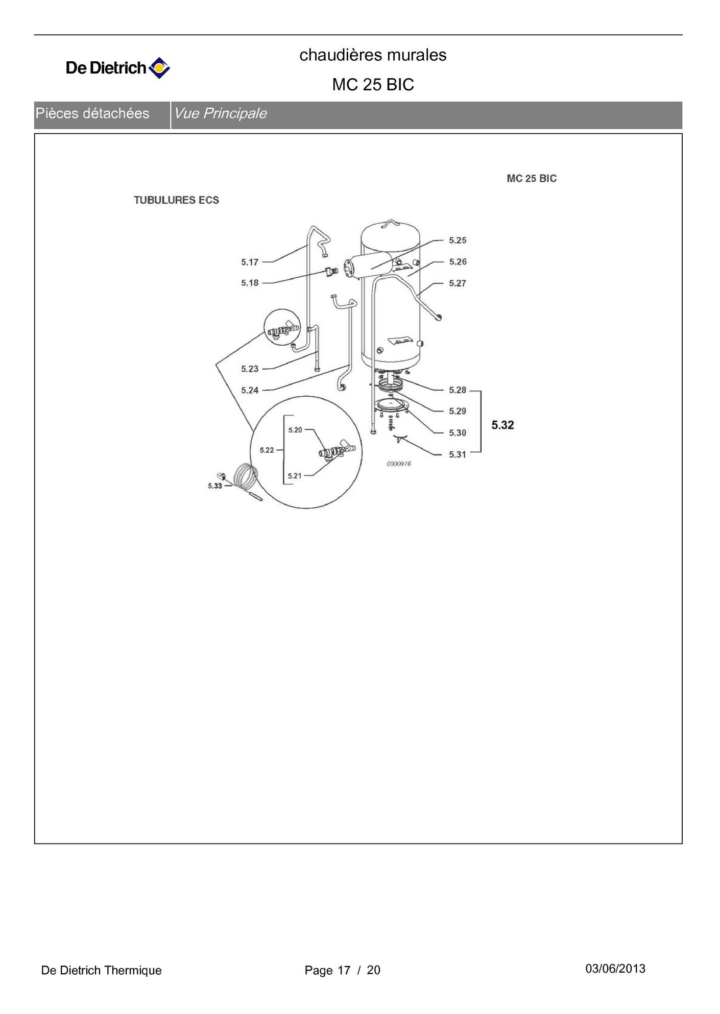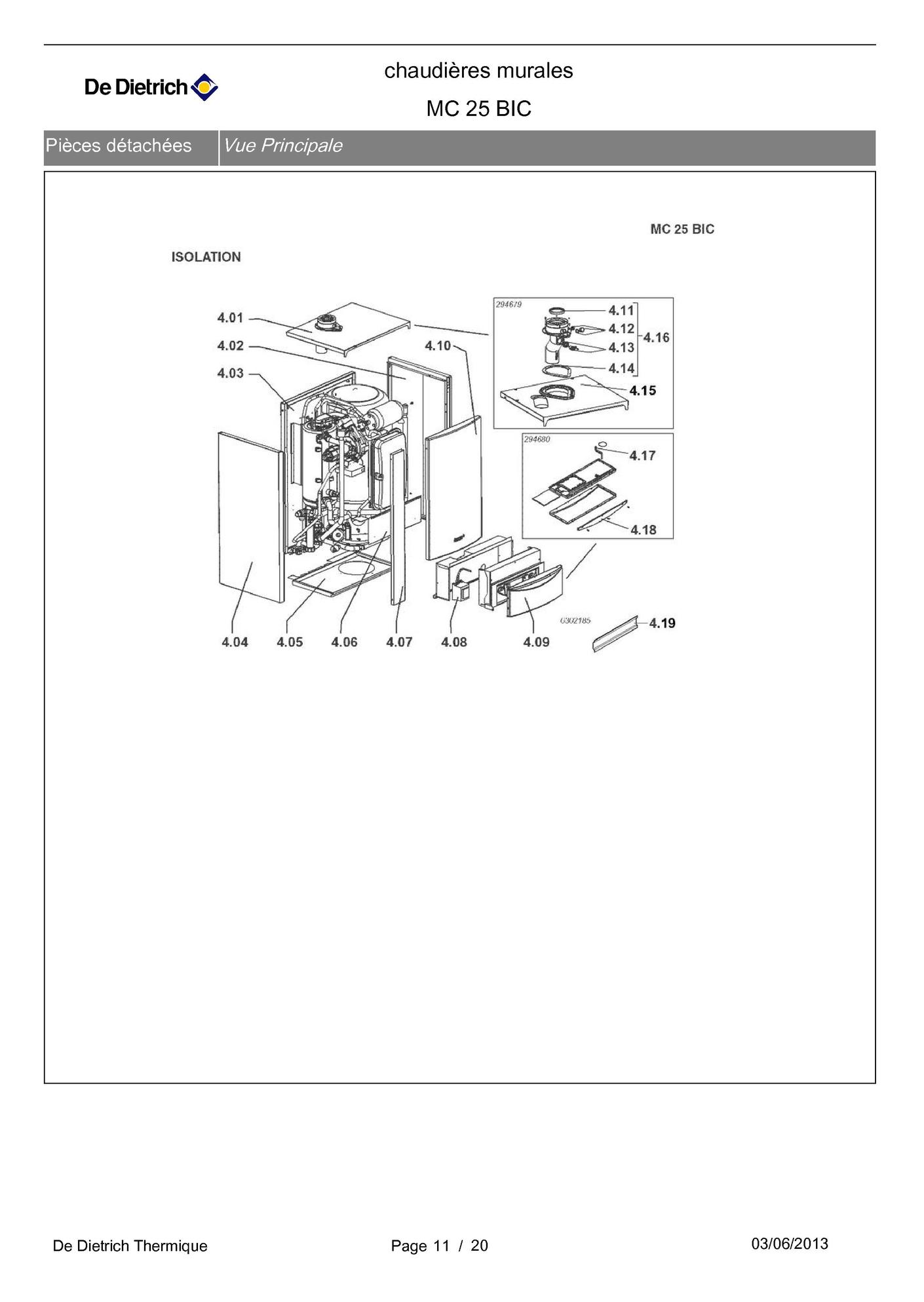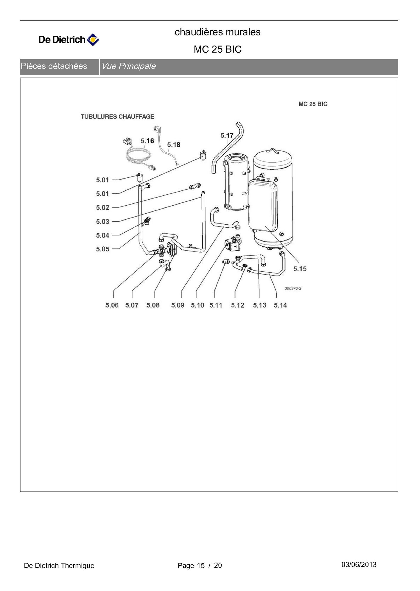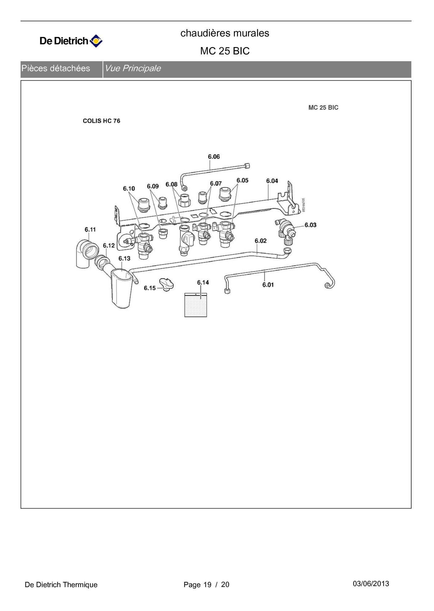 Pièces détachées contenues dans cet appareil Chaudière De Dietrich MC 25 BIC