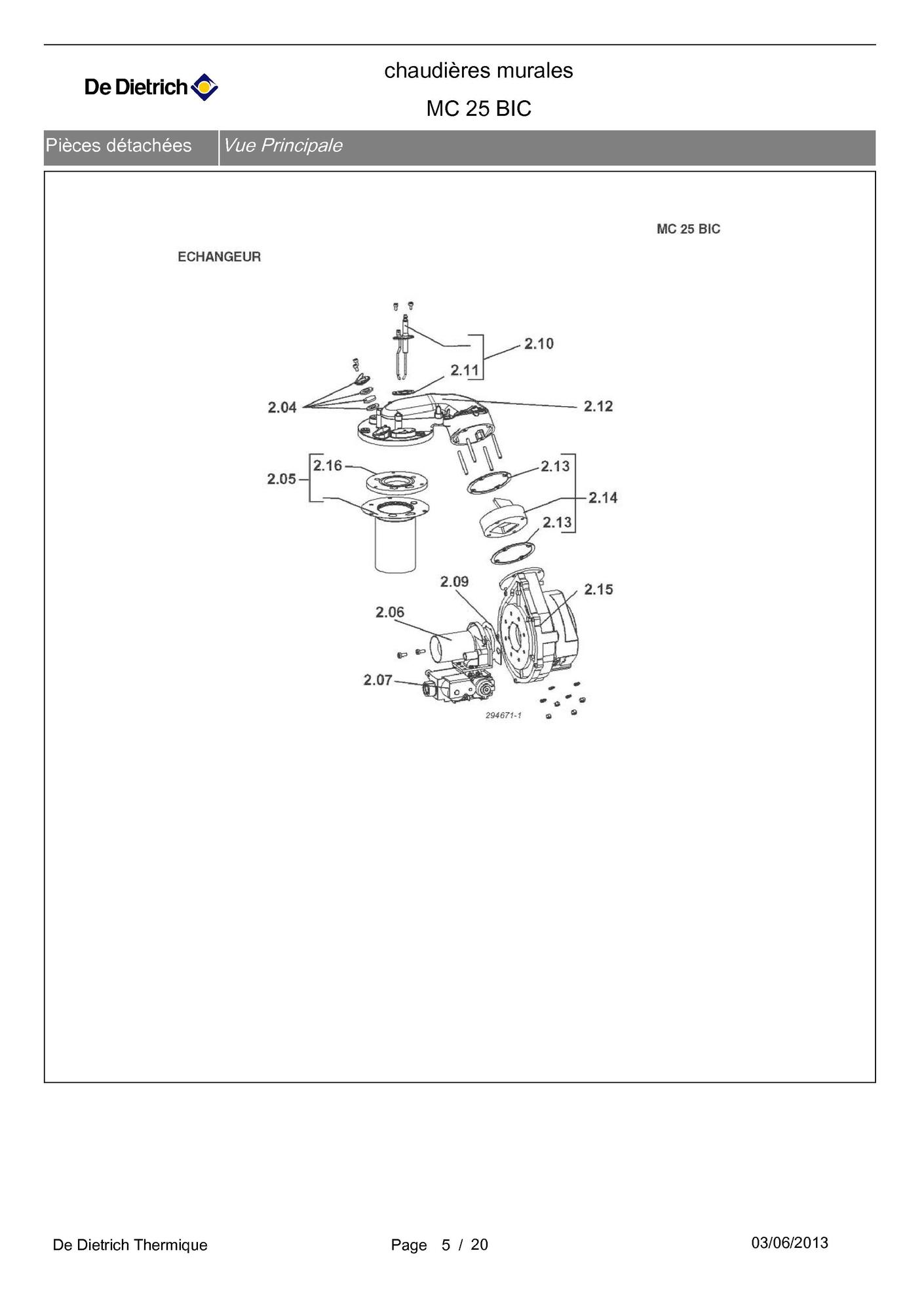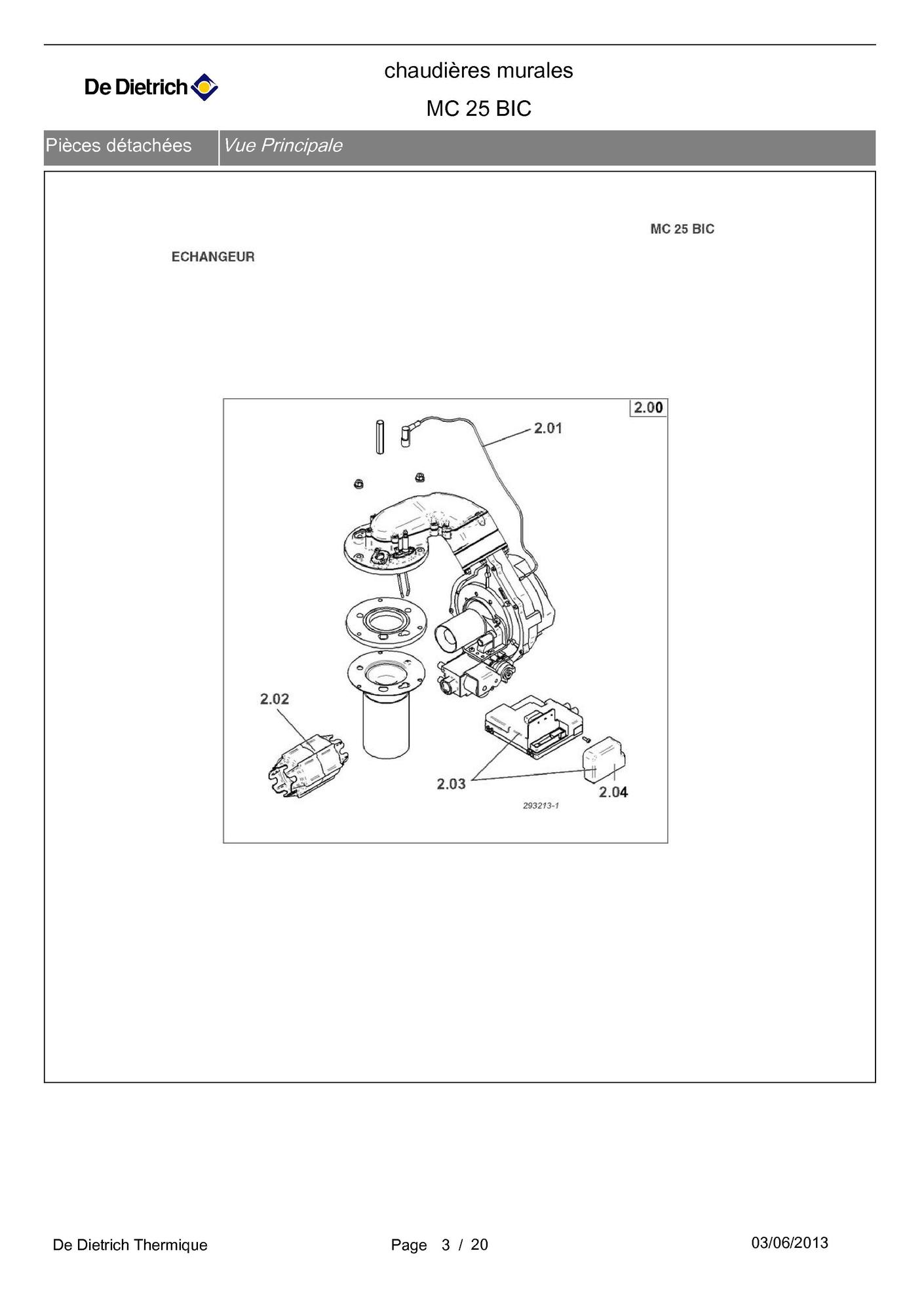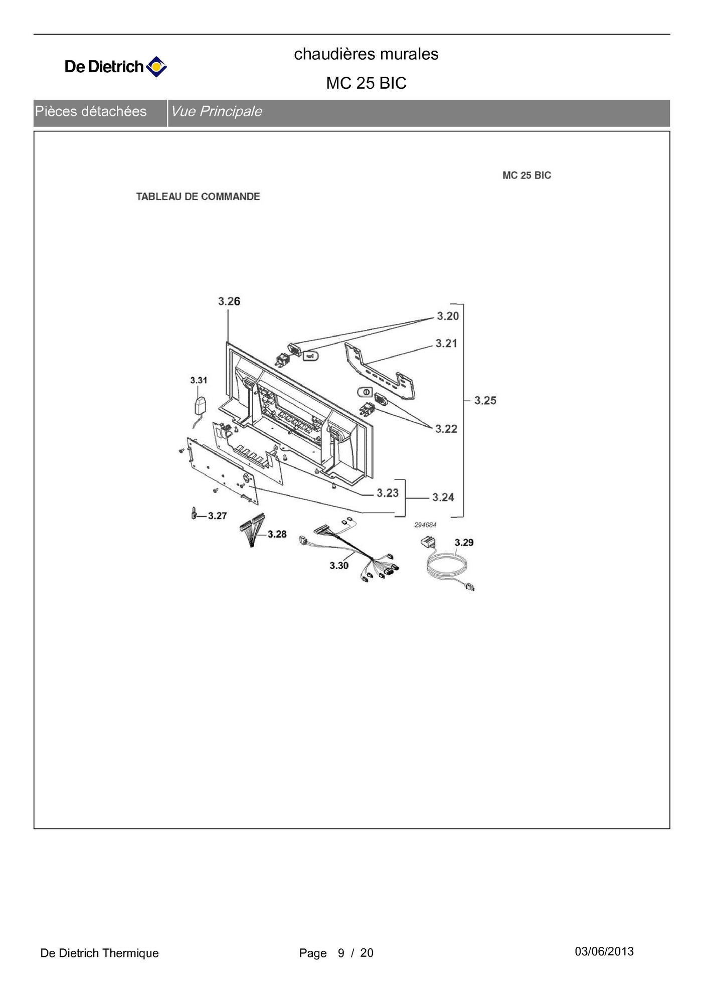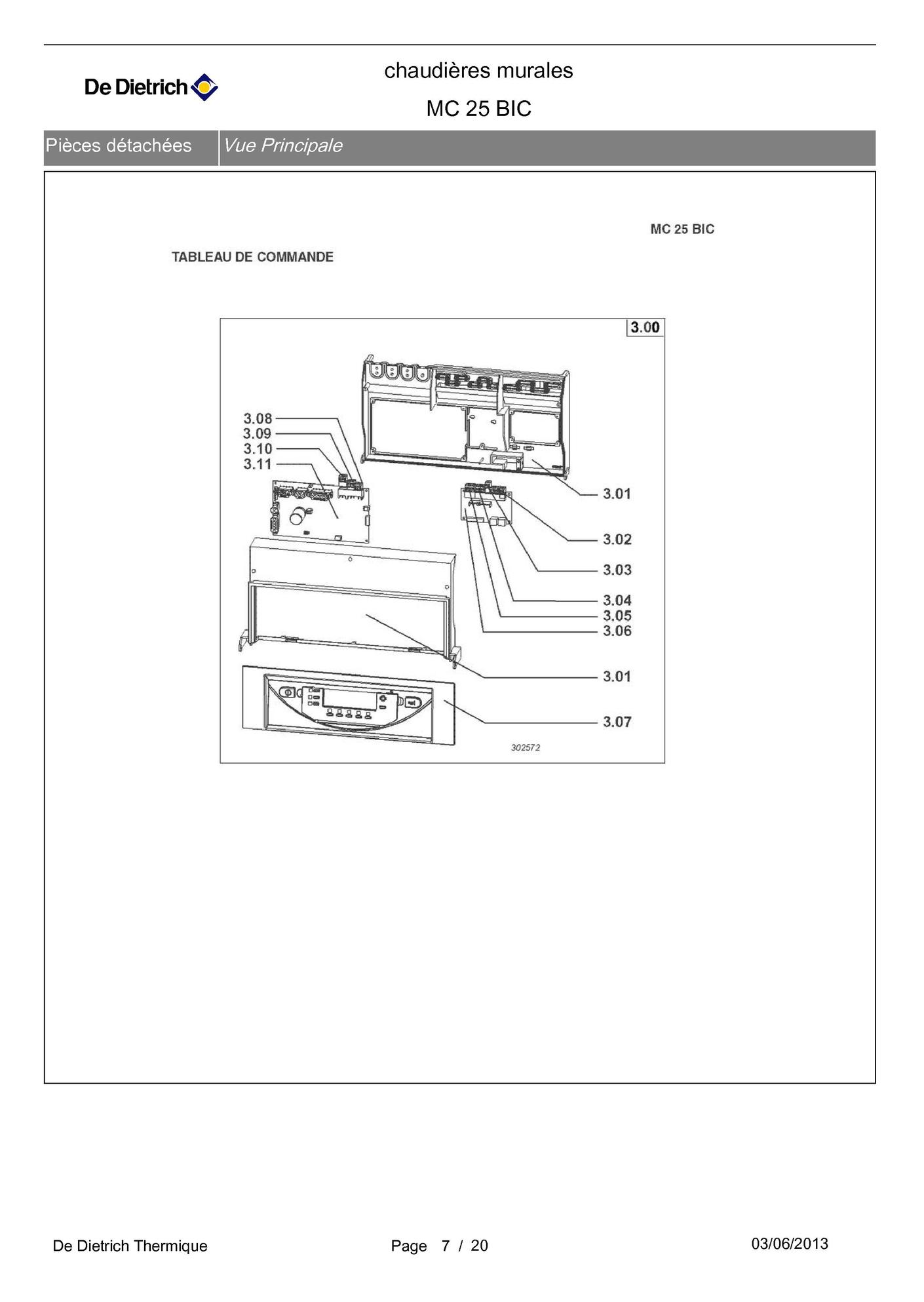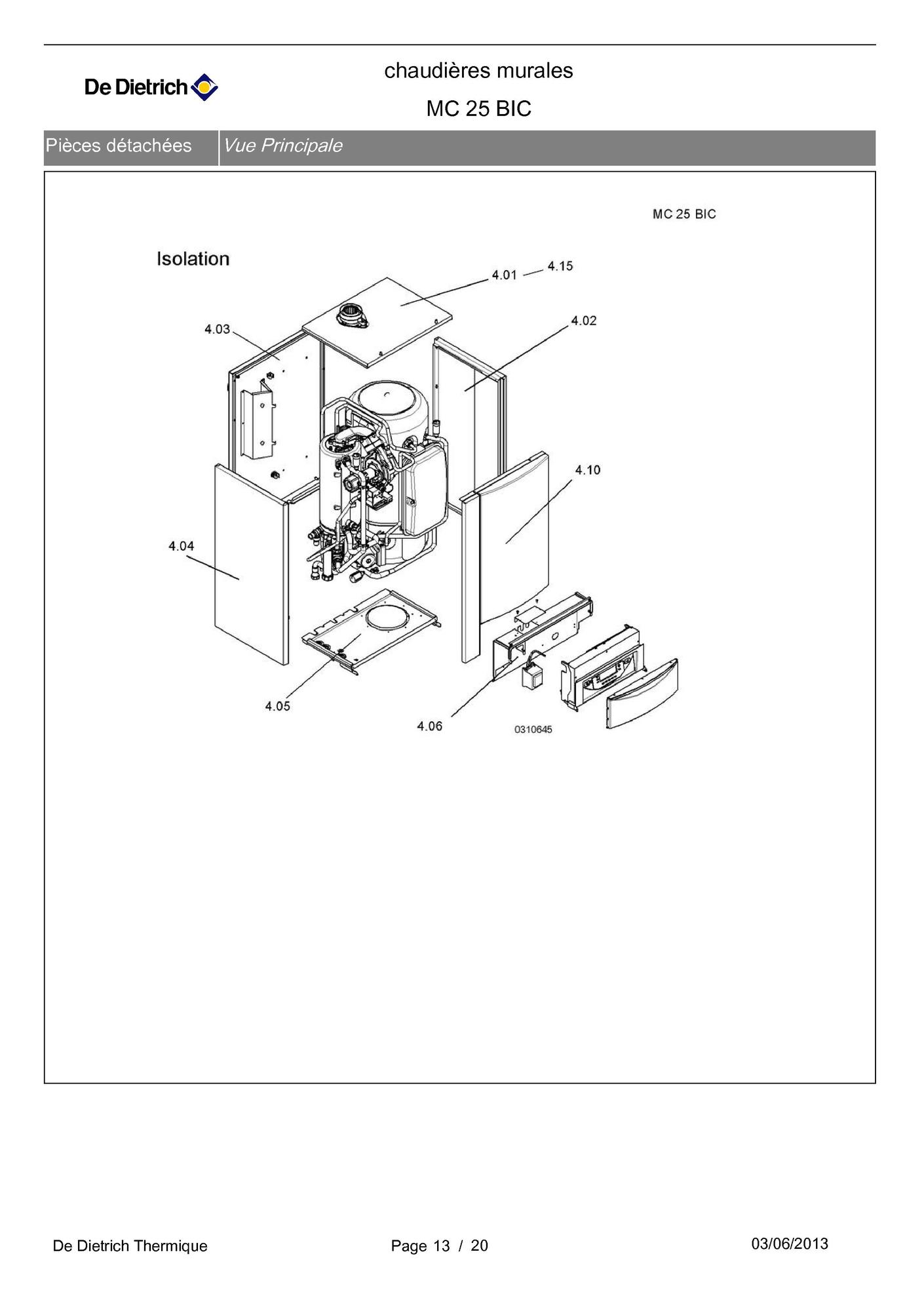 Pièces détachées contenues dans cet appareil Chaudière De Dietrich MC 25 BIC