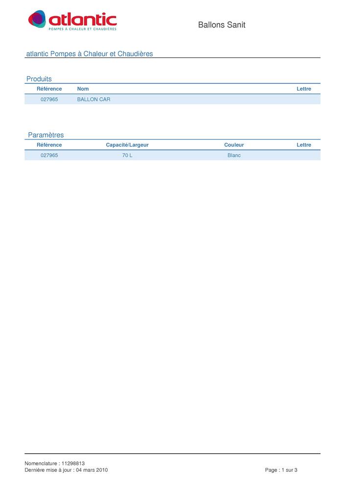 Pièces détachées contenues dans cet appareil Ballon Atlantic Guillot BALLON CAR 027965