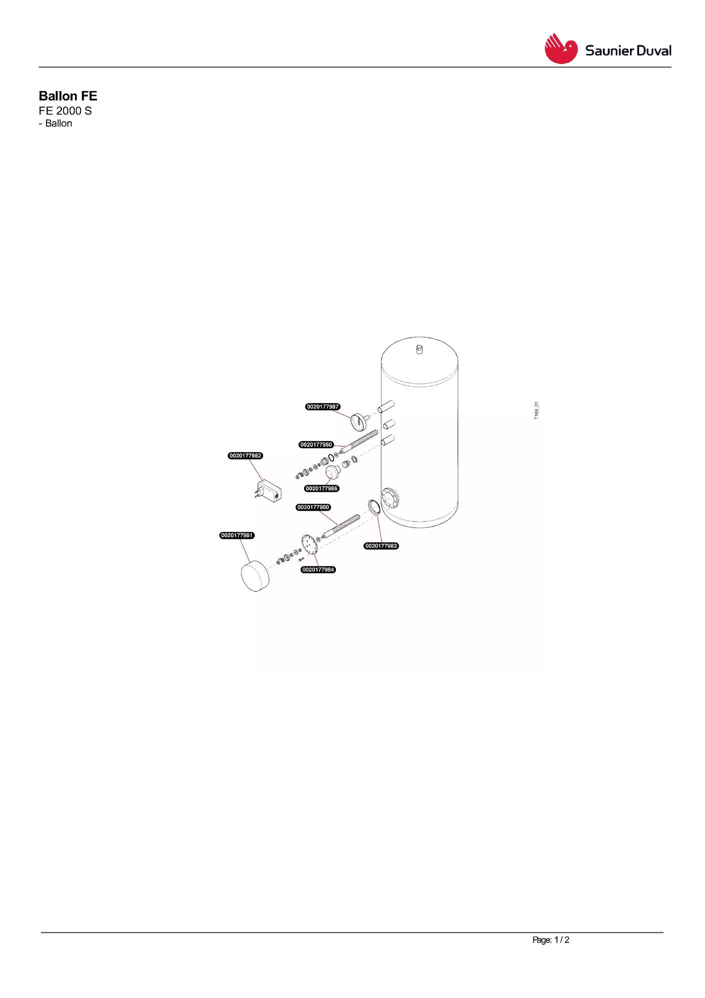 Pièces détachées contenues dans cet appareil Ballon Saunier Duval FE 2000 S (depuis 2014)