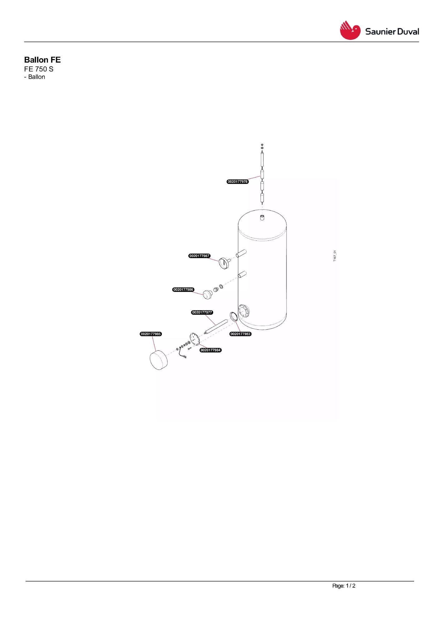 Pièces détachées contenues dans cet appareil Ballon Saunier Duval FE 400 S R1 (depuis 2014)