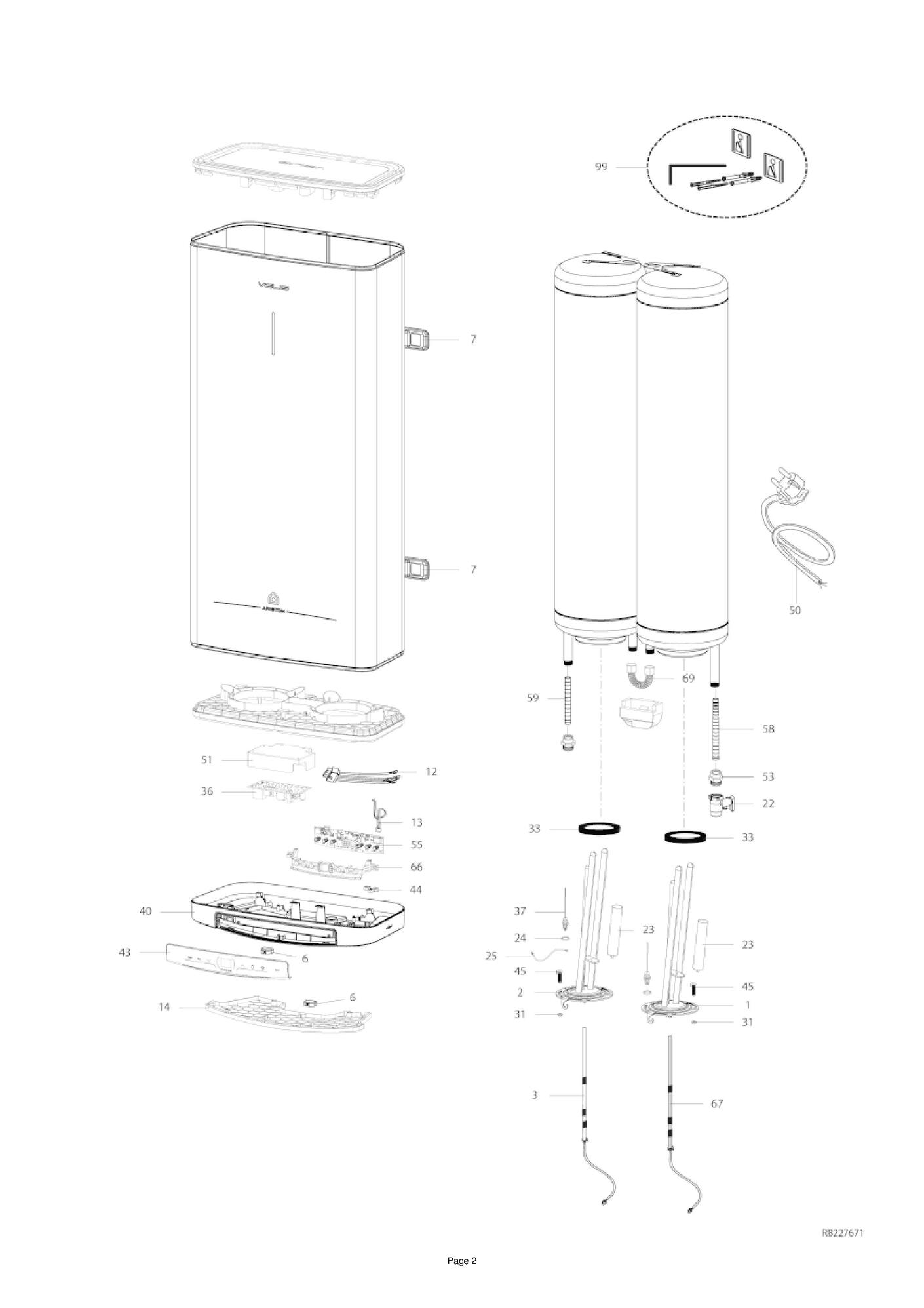 Pièces détachées contenues dans cet appareil Chauffe-eau Ariston VELIS TECH DRY WIFI 80 FR EU (2023-2024) Ref 3626395