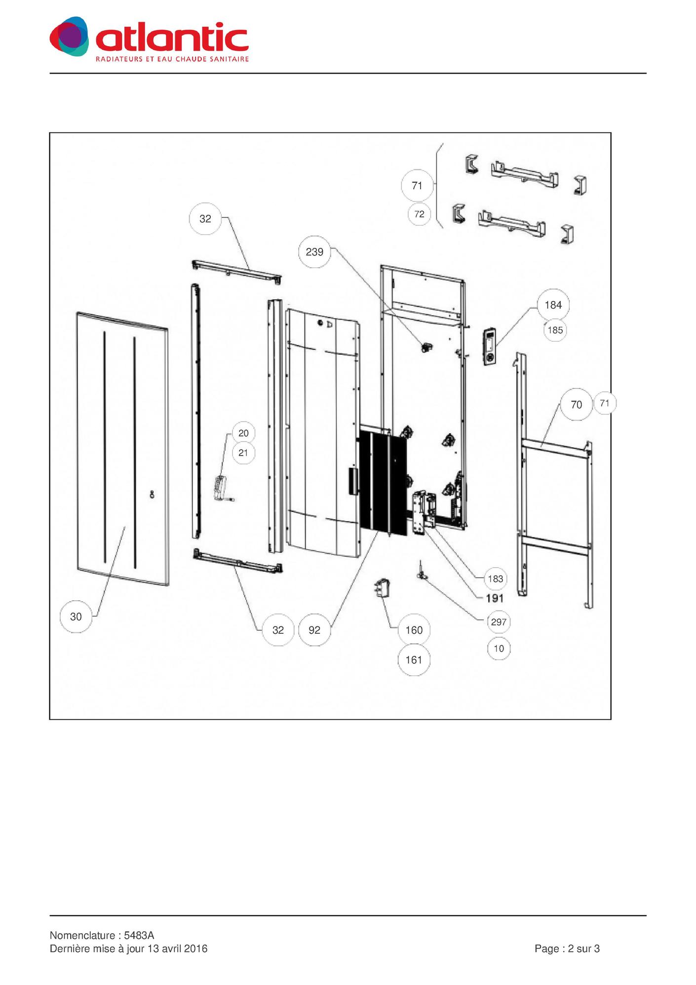 Pièces détachées contenues dans cet appareil Radiateur Atlantic ONIRIS PI CONNECTE V 1000W BLC (518810)