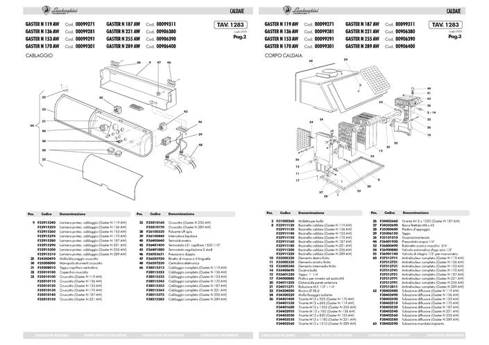 Pièces détachées contenues dans cet appareil Chaudière Lamborghini gaster n 119 289