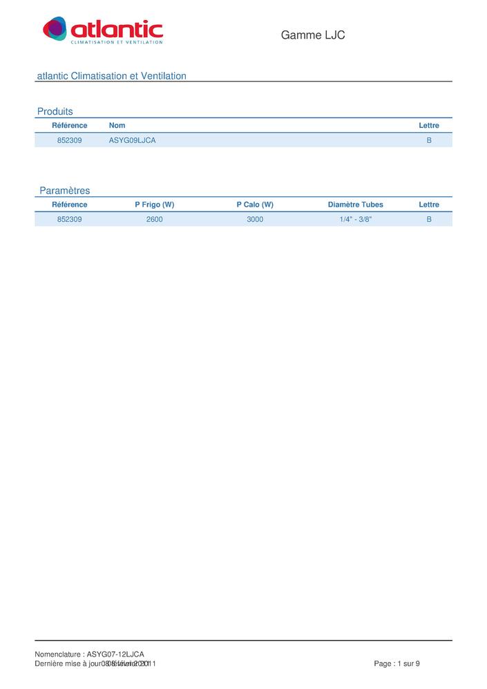 Unité murale Atlantic Climatisation et Ventilation ASY G09LJCA