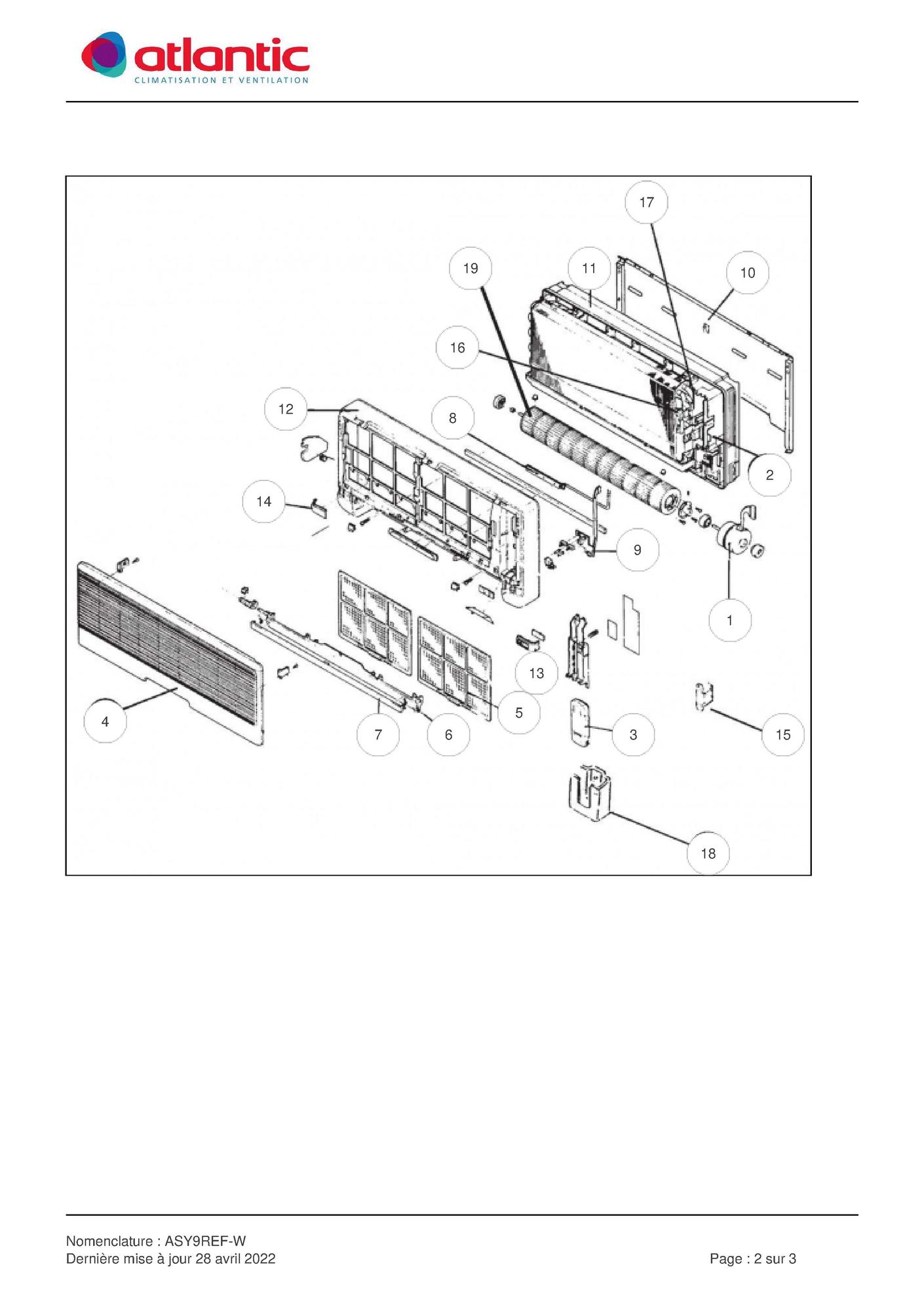 Pièces détachées contenues dans cet appareil Unité murale Atlantic ASY9REFW (836409)