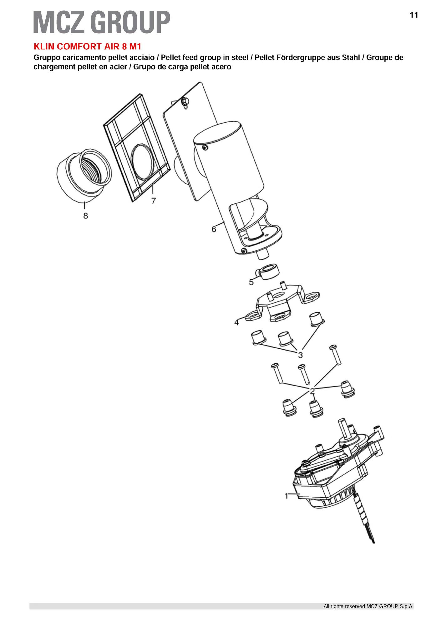 Pièces détachées contenues dans cet appareil Poêle MCZ/RED Klin Comfort AIR 8 M1