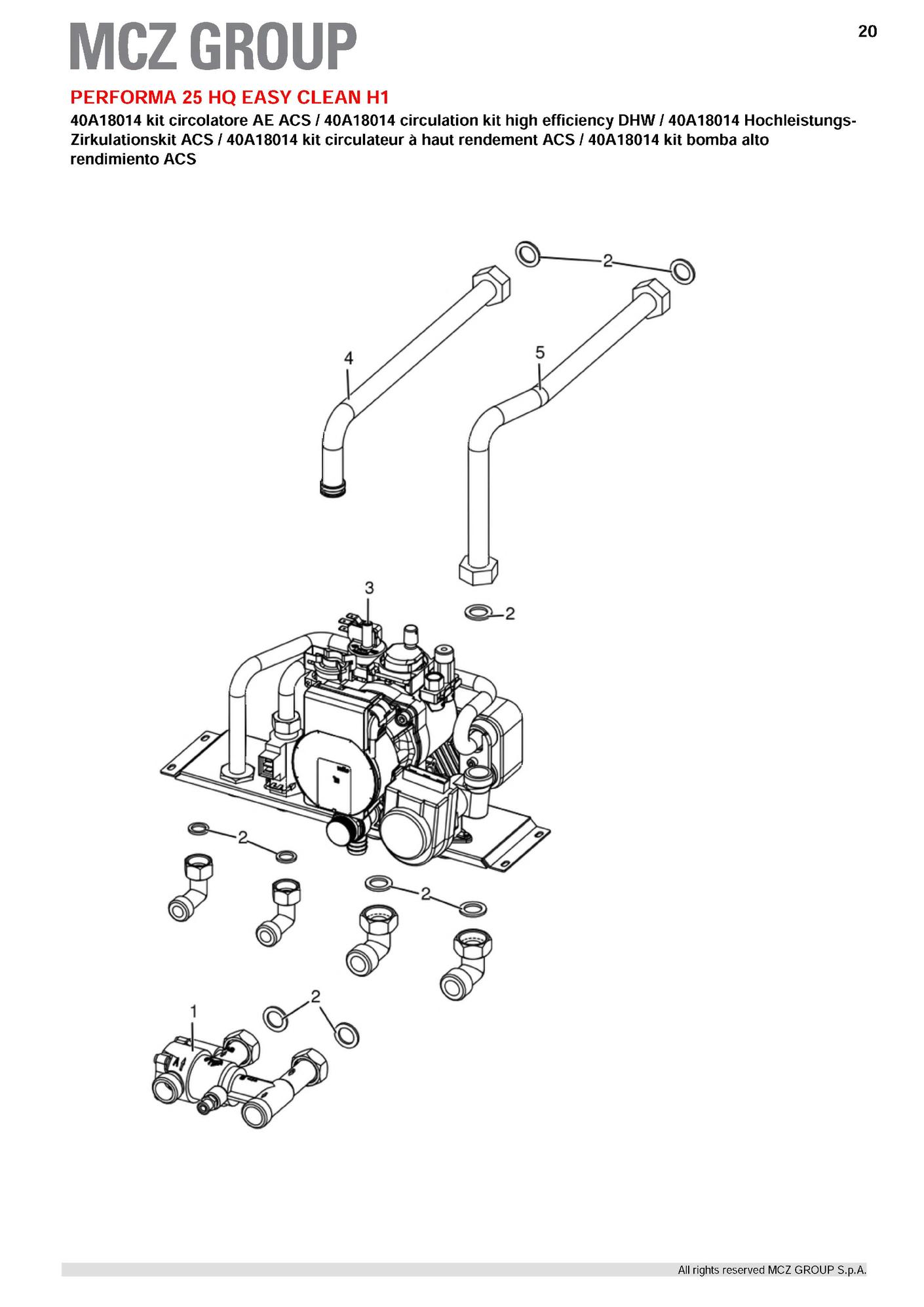 Pièces détachées contenues dans cet appareil Chaudière MCZ/RED Performa 25 HQ Easy Clean H1
