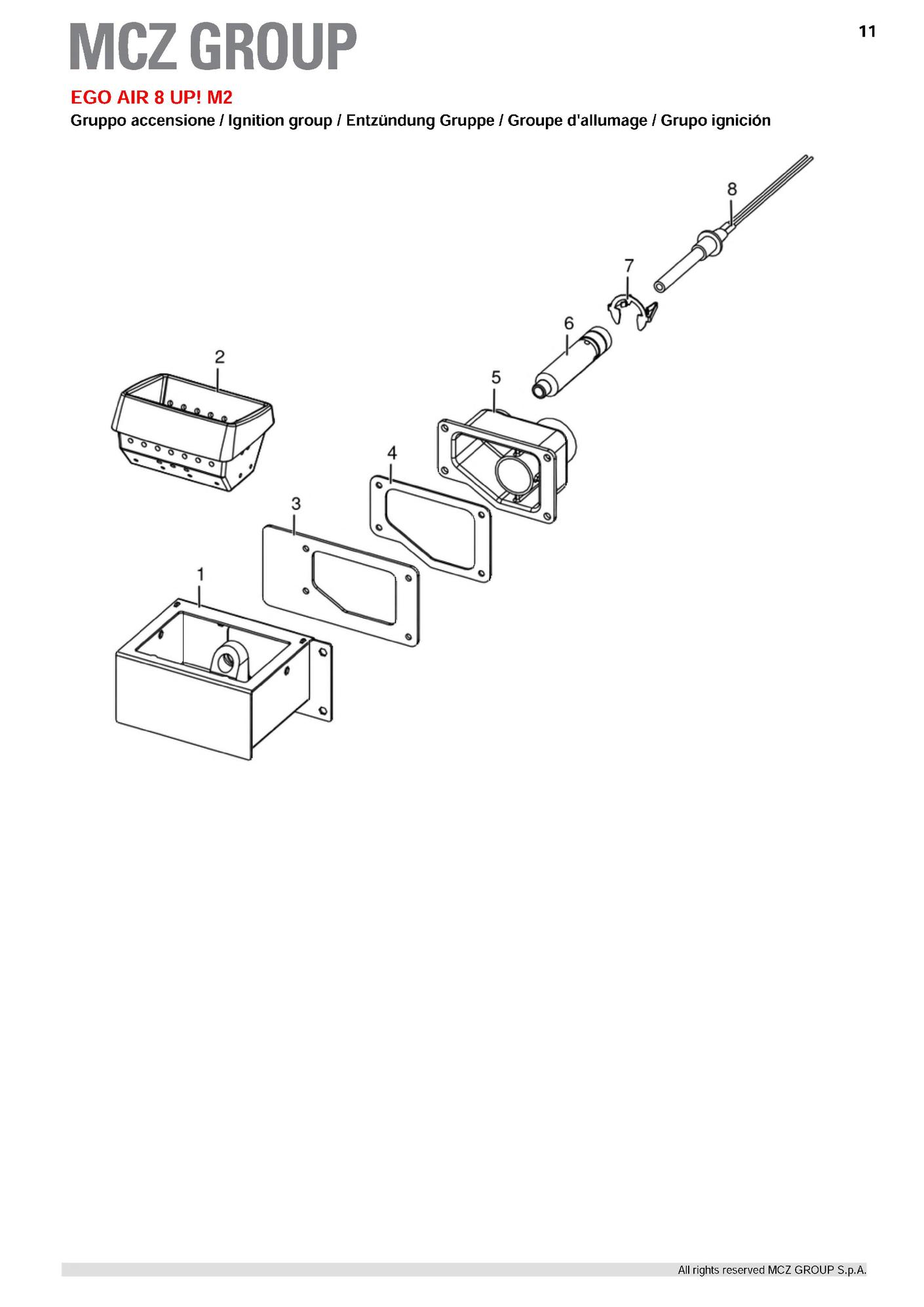 Pièces détachées contenues dans cet appareil Poêle MCZ/RED Ego AIR 8 UP! M2