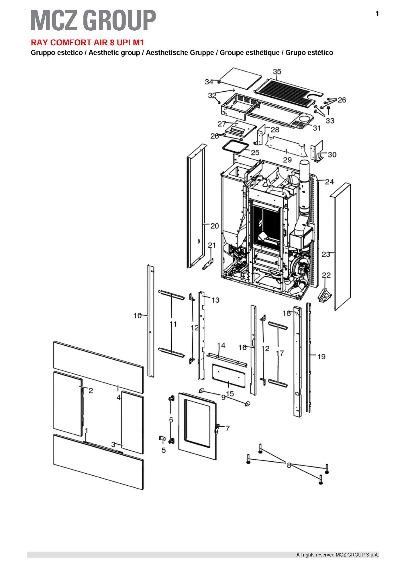 Pièces détachées contenues dans cet appareil Poêle MCZ/RED Ray Comfort AIR 8 UP! M1