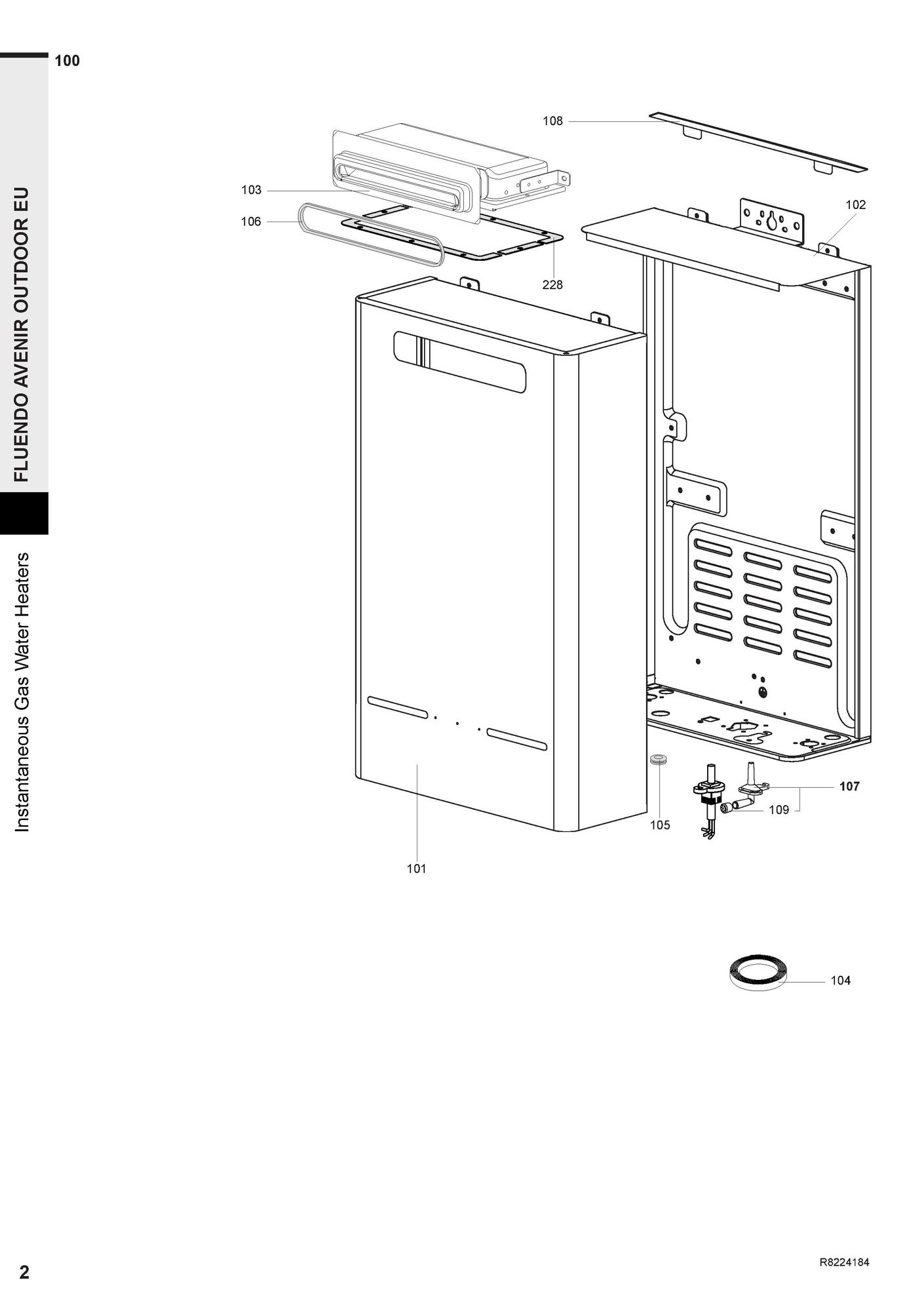 Pièces détachées contenues dans cet appareil Chauffe-eau Chaffoteaux FLUENDO AVENIR OUTDOOR 11 LPG EU