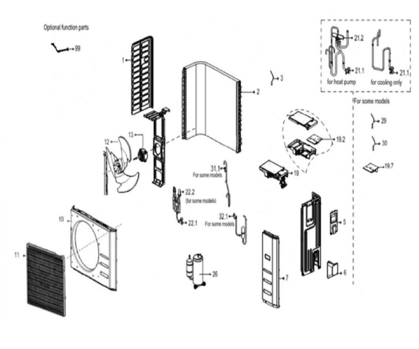 Pièces détachées contenues dans cet appareil Unité externe Ciat MAMBO 36 38HU36VSC