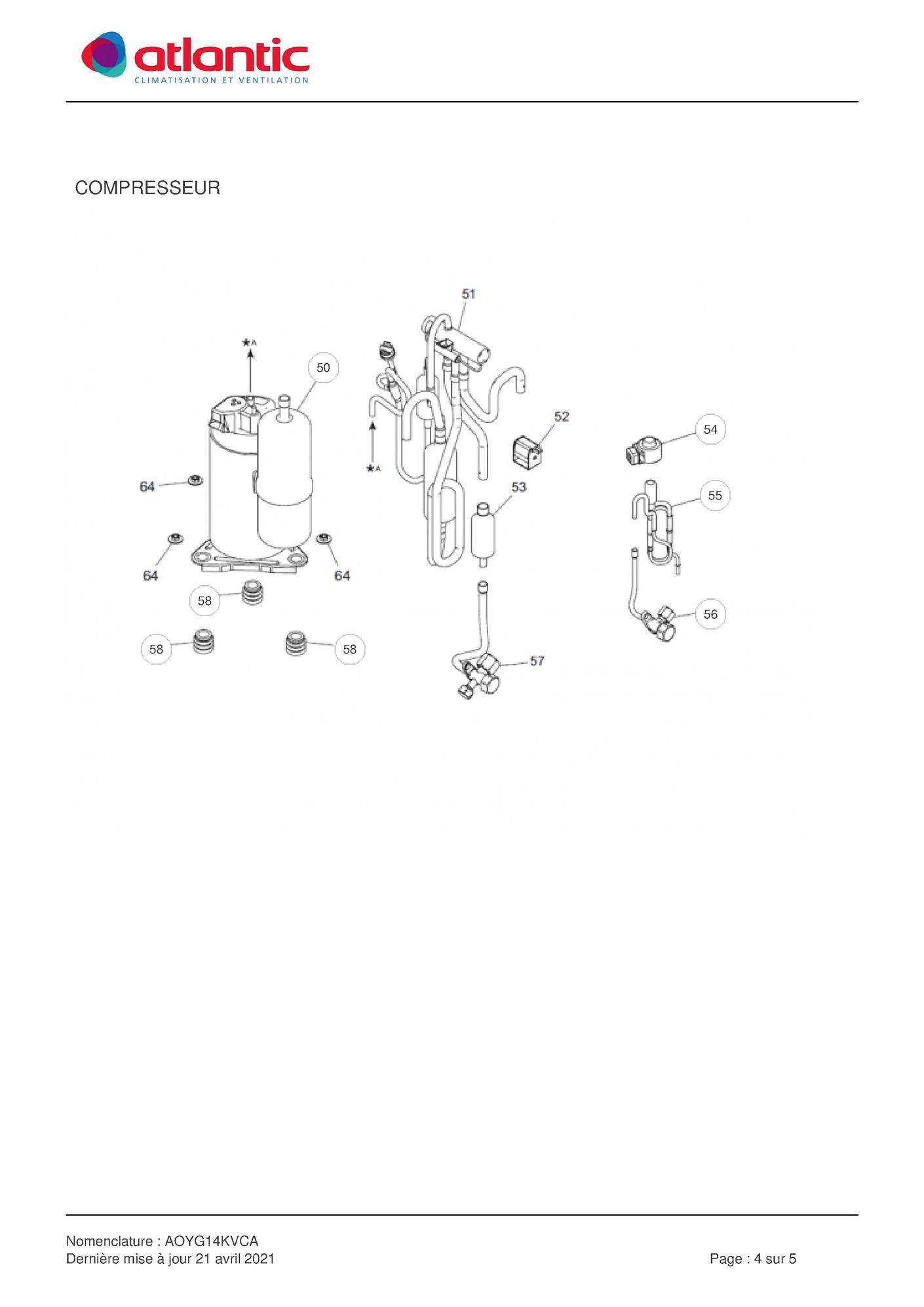 Pièces détachées contenues dans cet appareil Unité externe Atlantic AOYG14KVCA (872123)