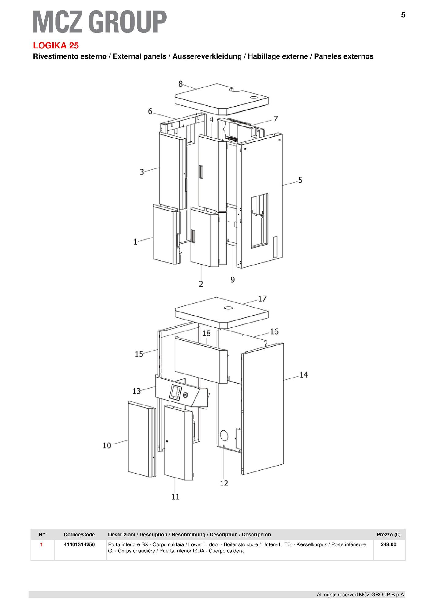 Pièces détachées contenues dans cet appareil Chaudière MCZ/RED Logika 25