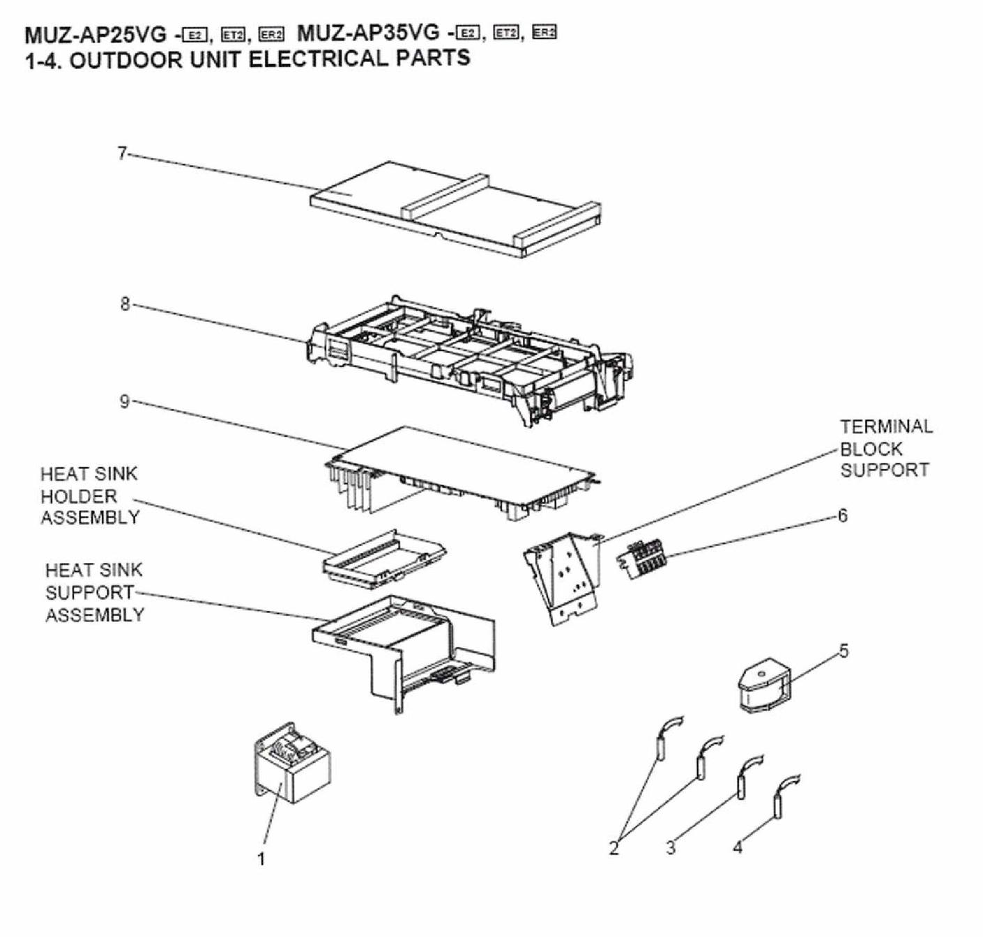 Pièces détachées contenues dans cet appareil Unité externe Mitsubishi Electric MUZ AP35VG-ER2