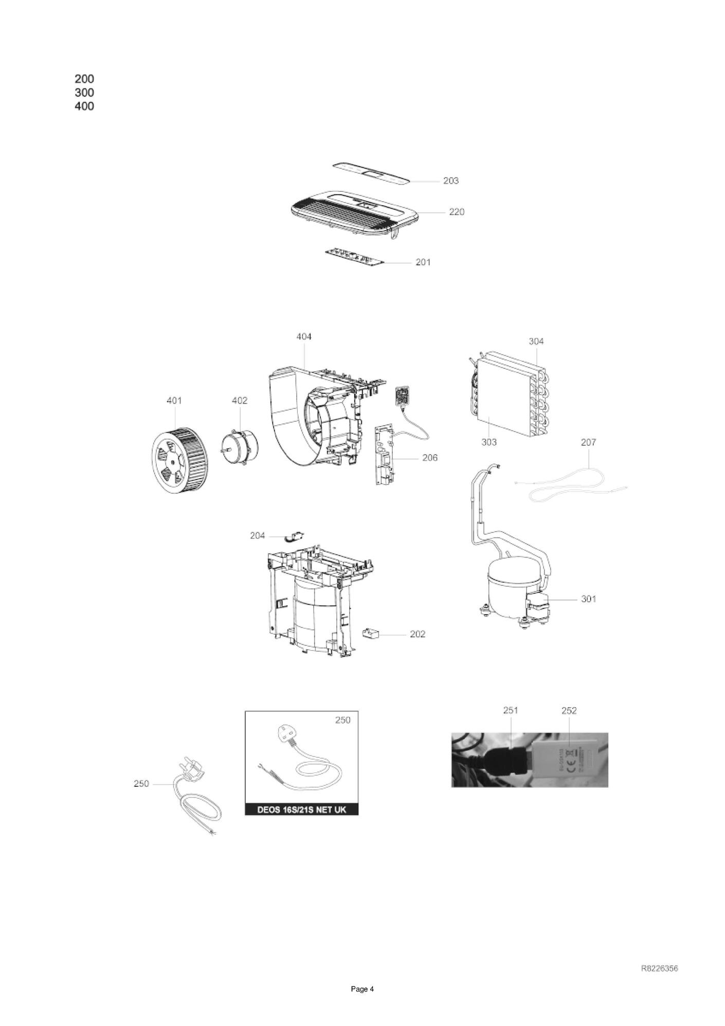 Pièces détachées contenues dans cet appareil Déshumidificateur Ariston DEOS 21S NET (2024) Ref 3381355