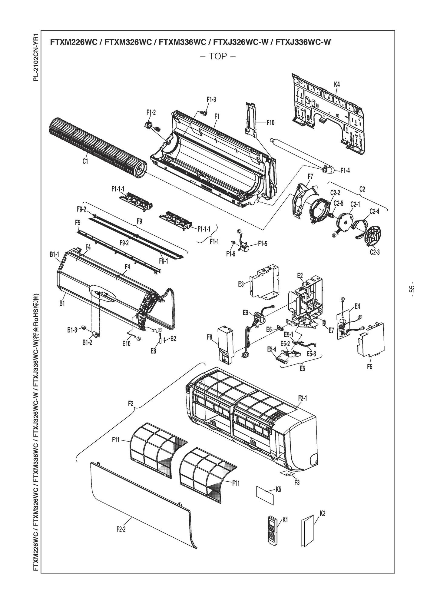 Pièces détachées contenues dans cet appareil Unité interne Daikin FTXJ336WC-W