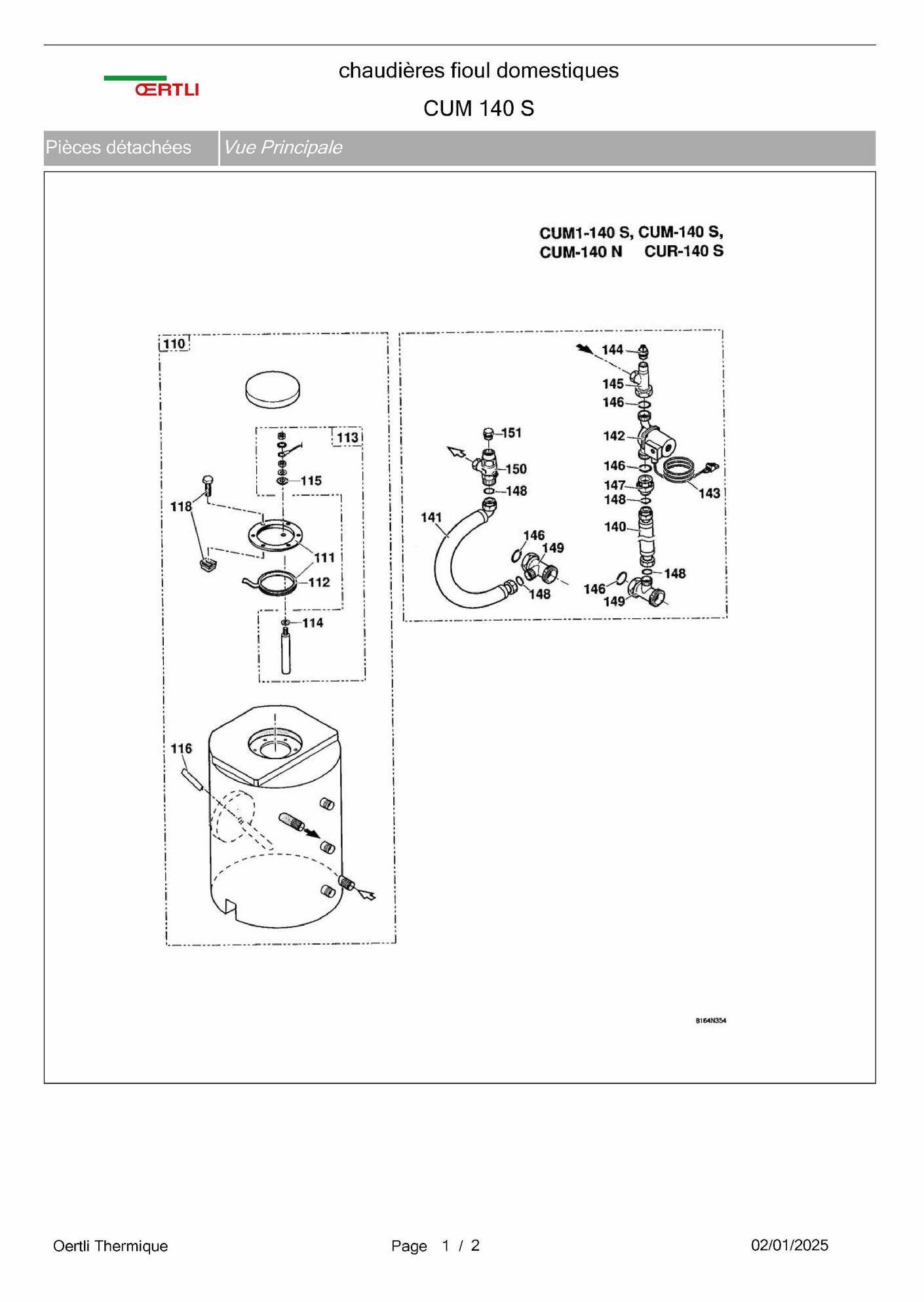 Pièces détachées contenues dans cet appareil Chaudière Oertli CUR 140 S (88885551)