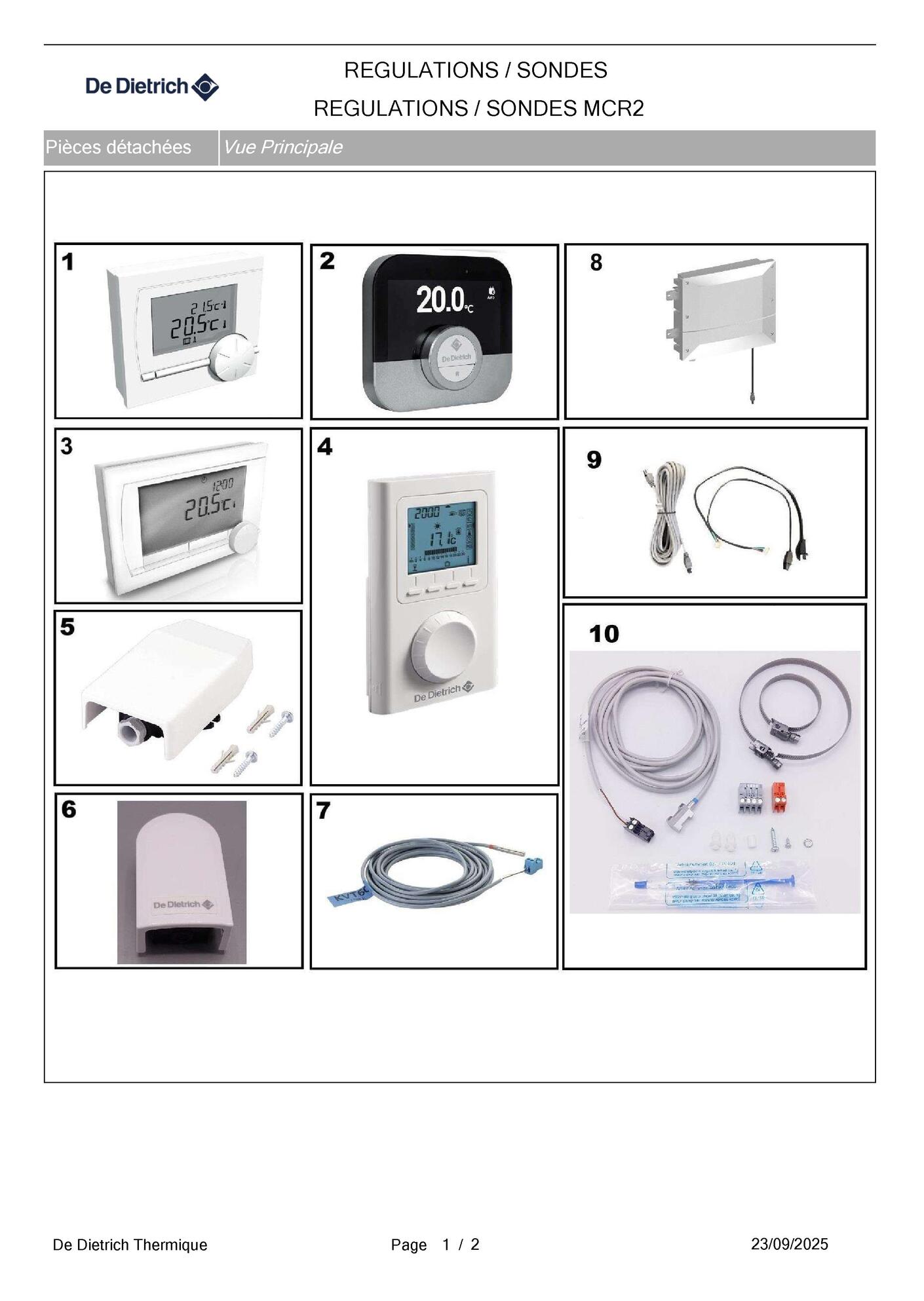 Pièces détachées contenues dans cet appareil REGULATION + SONDES MCR2 De Dietrich