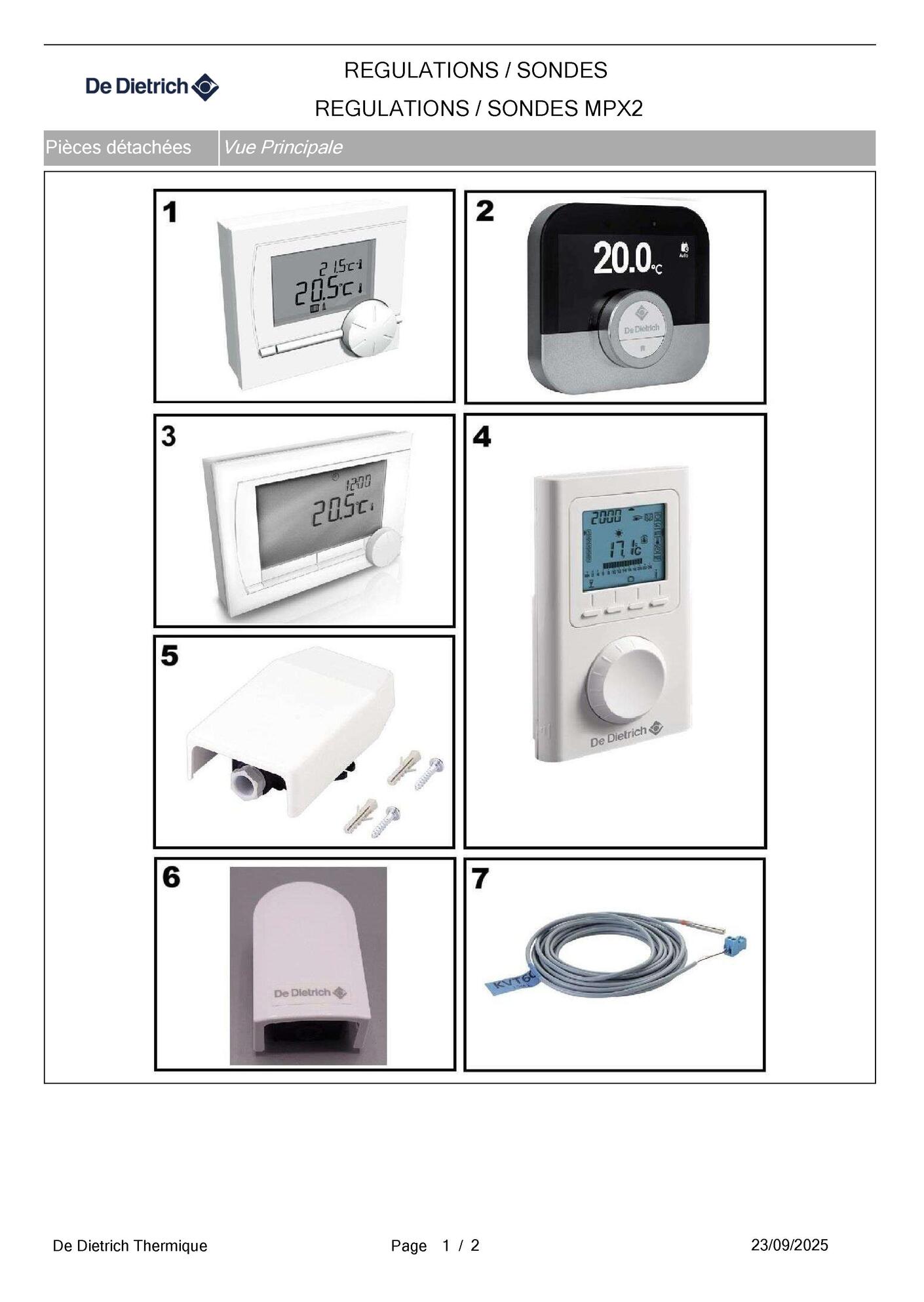 Pièces détachées contenues dans cet appareil REGULATION + SONDES MPX2 De Dietrich
