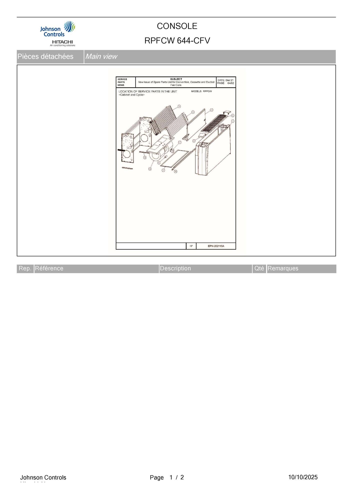 Pièces détachées contenues dans cet appareil Console Hitachi RPFCW 644-CFV
