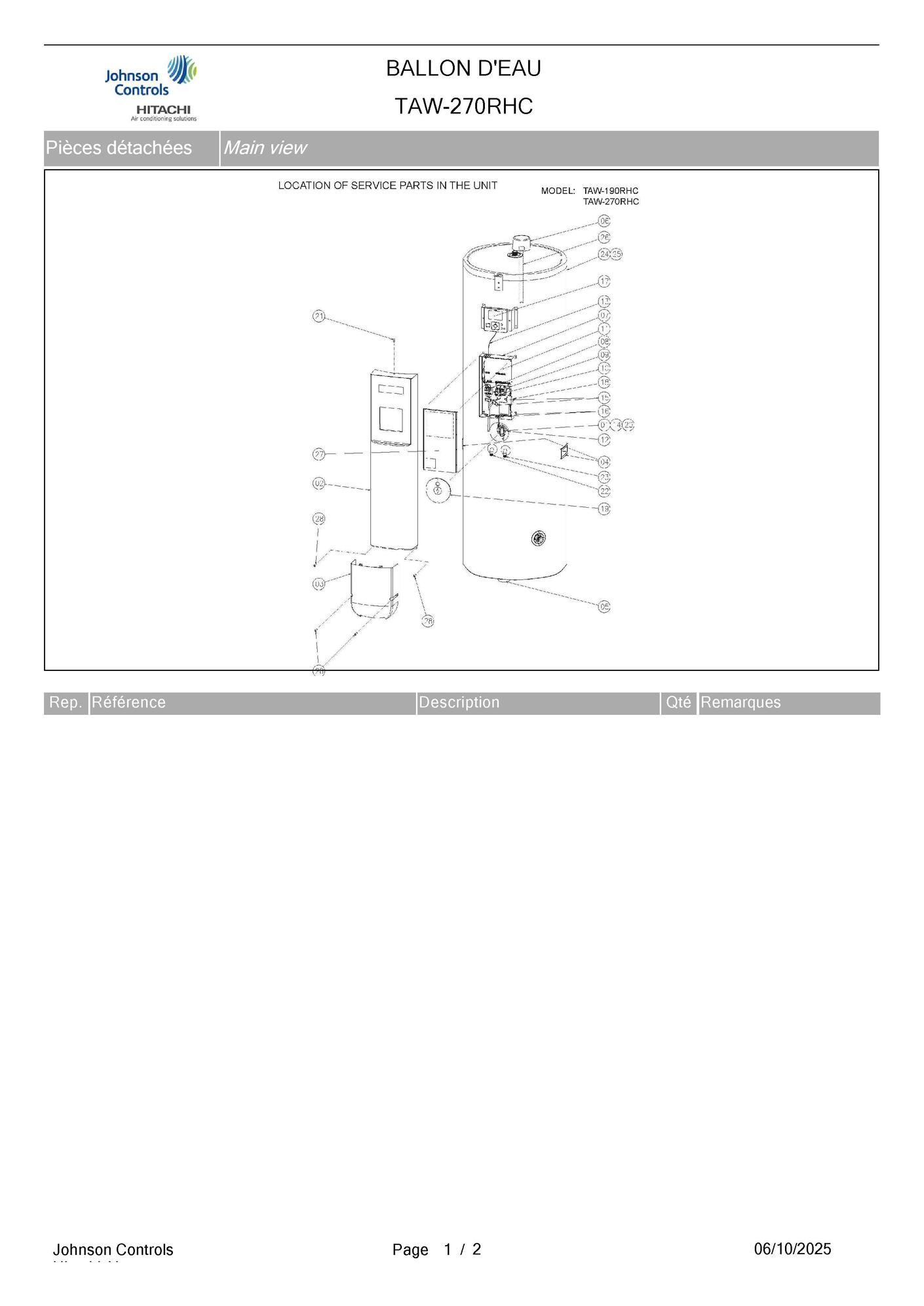 Pièces détachées contenues dans cet appareil Ballon Hitachi TAW-270RHC