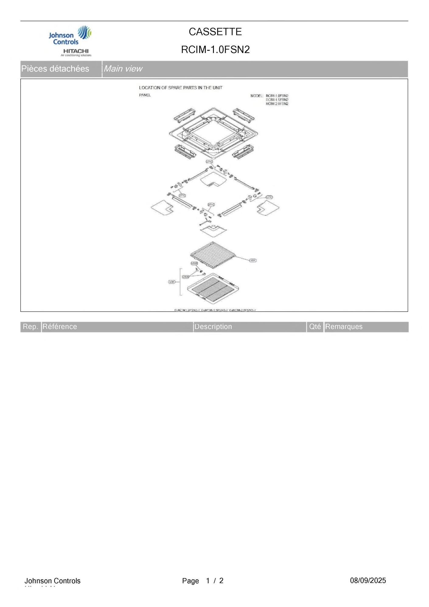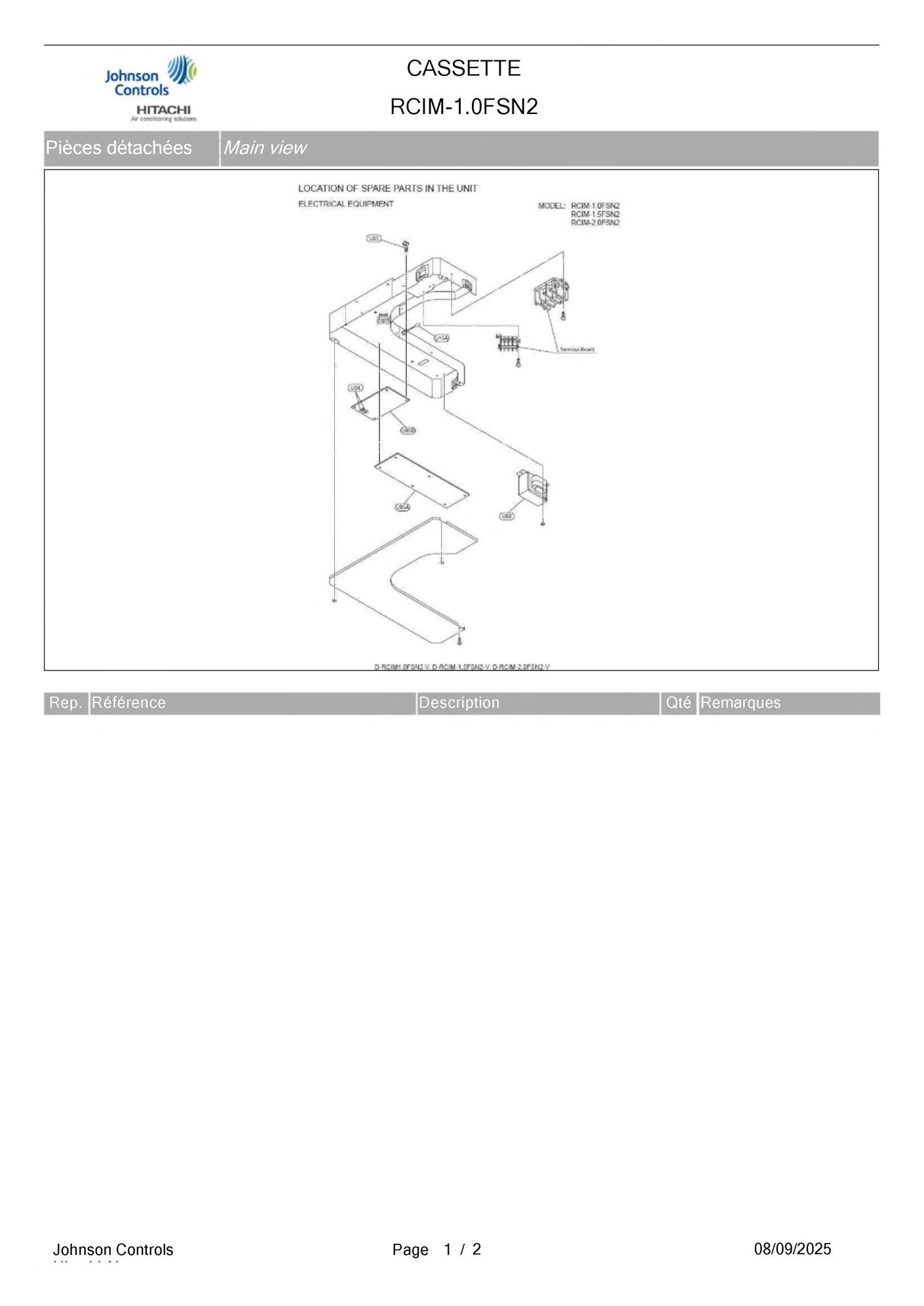 Pièces détachées contenues dans cet appareil Unité cassette Hitachi RCIM-1.0FSN2.