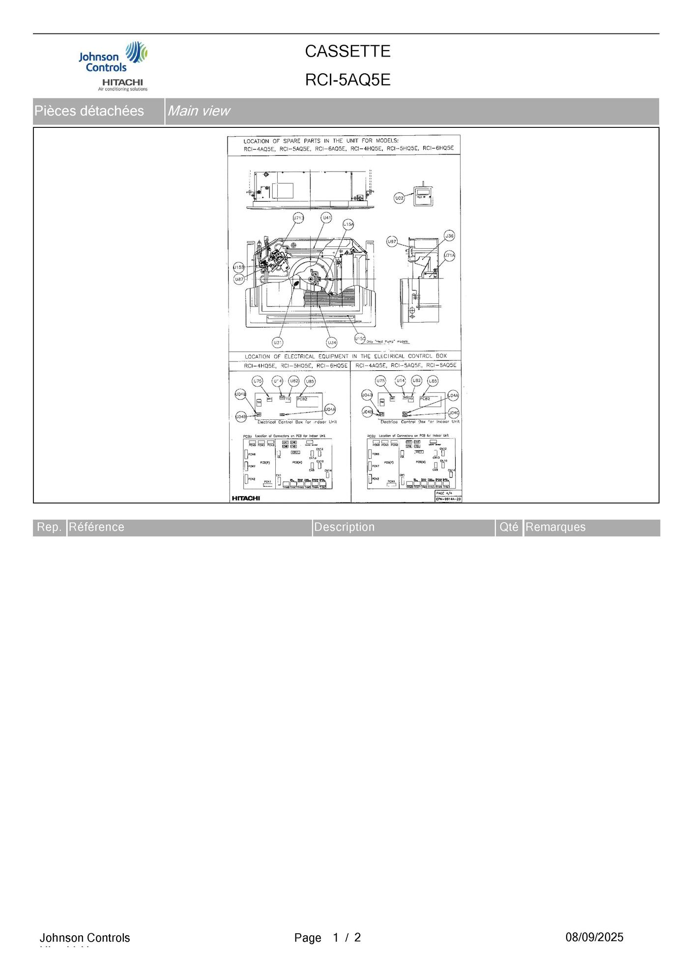 Pièces détachées contenues dans cet appareil Unité cassette Hitachi RCI-5AQ5E