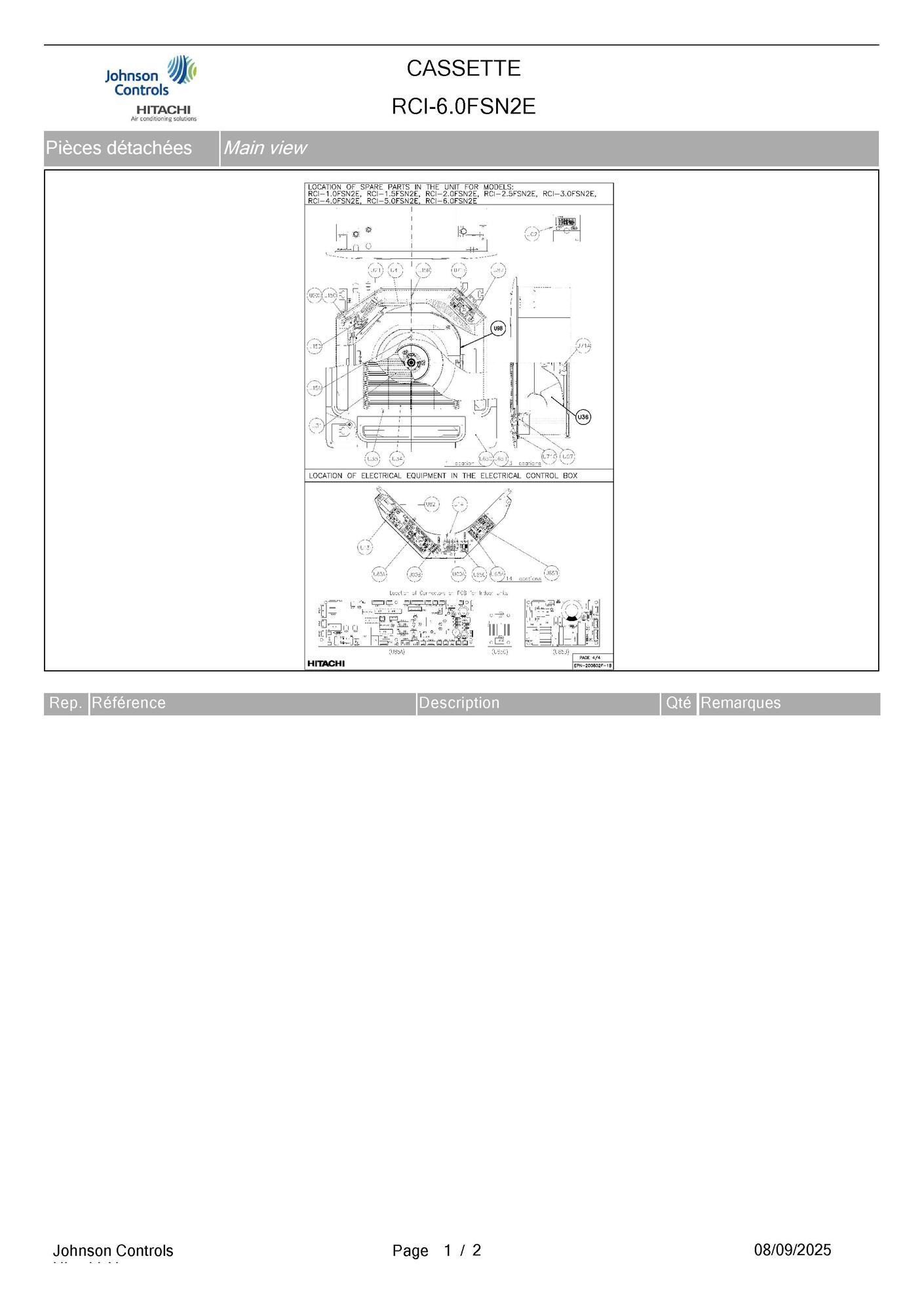 Pièces détachées contenues dans cet appareil Unité cassette Hitachi RCI-6.0FSN2E