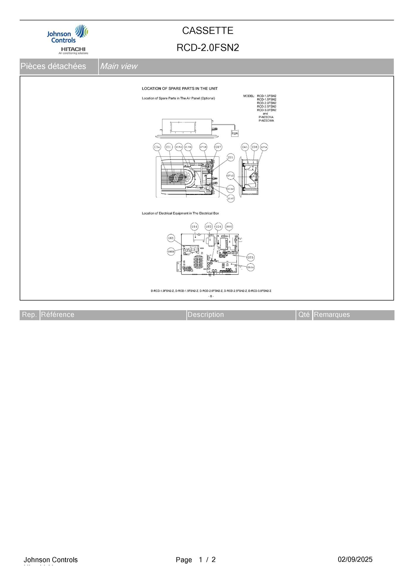 Pièces détachées Unité cassette Hitachi RCD-2.0FSN2 chez Pièces Express