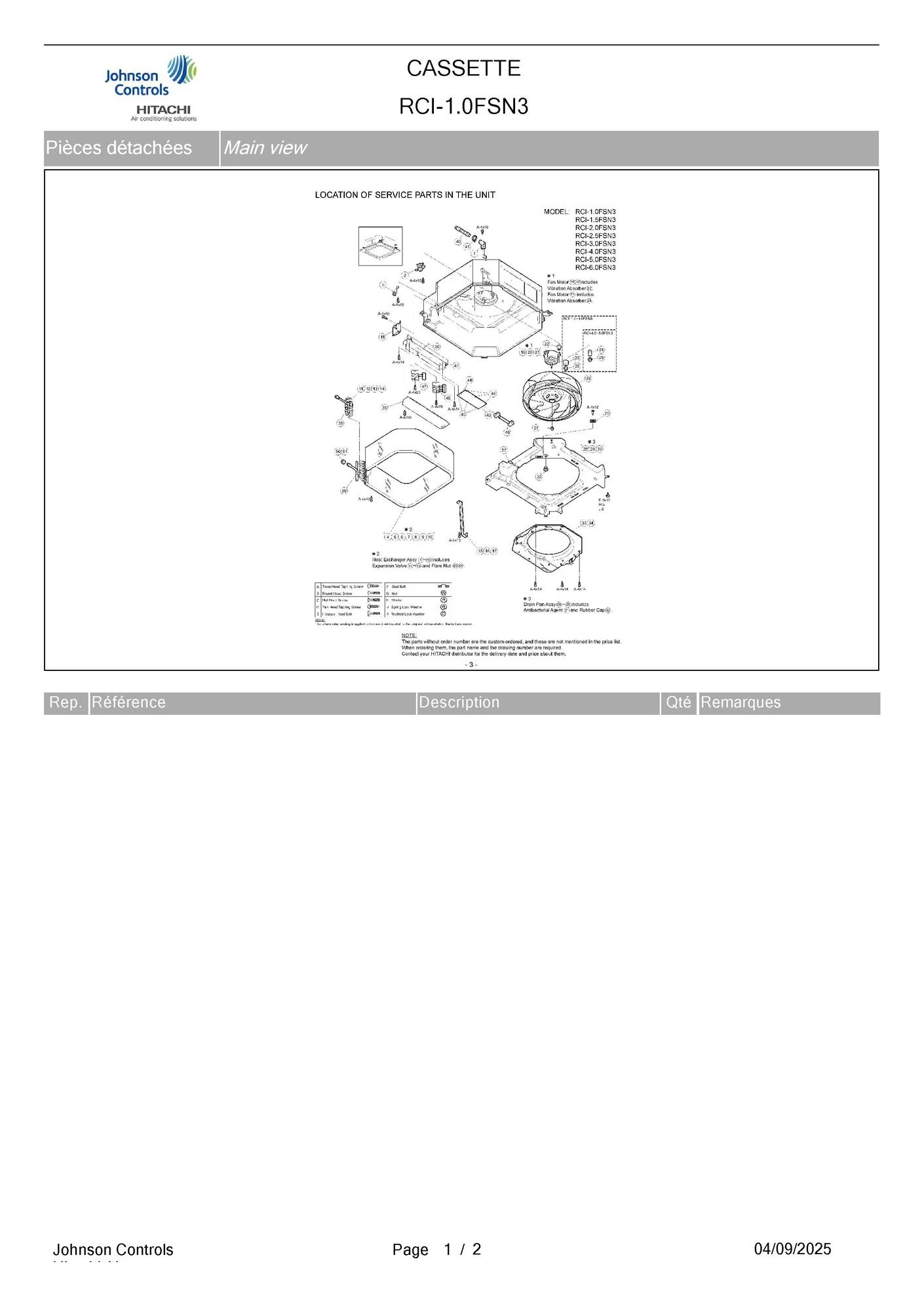 Pièces détachées contenues dans cet appareil Unité cassette Hitachi RCI-1.0FSN3