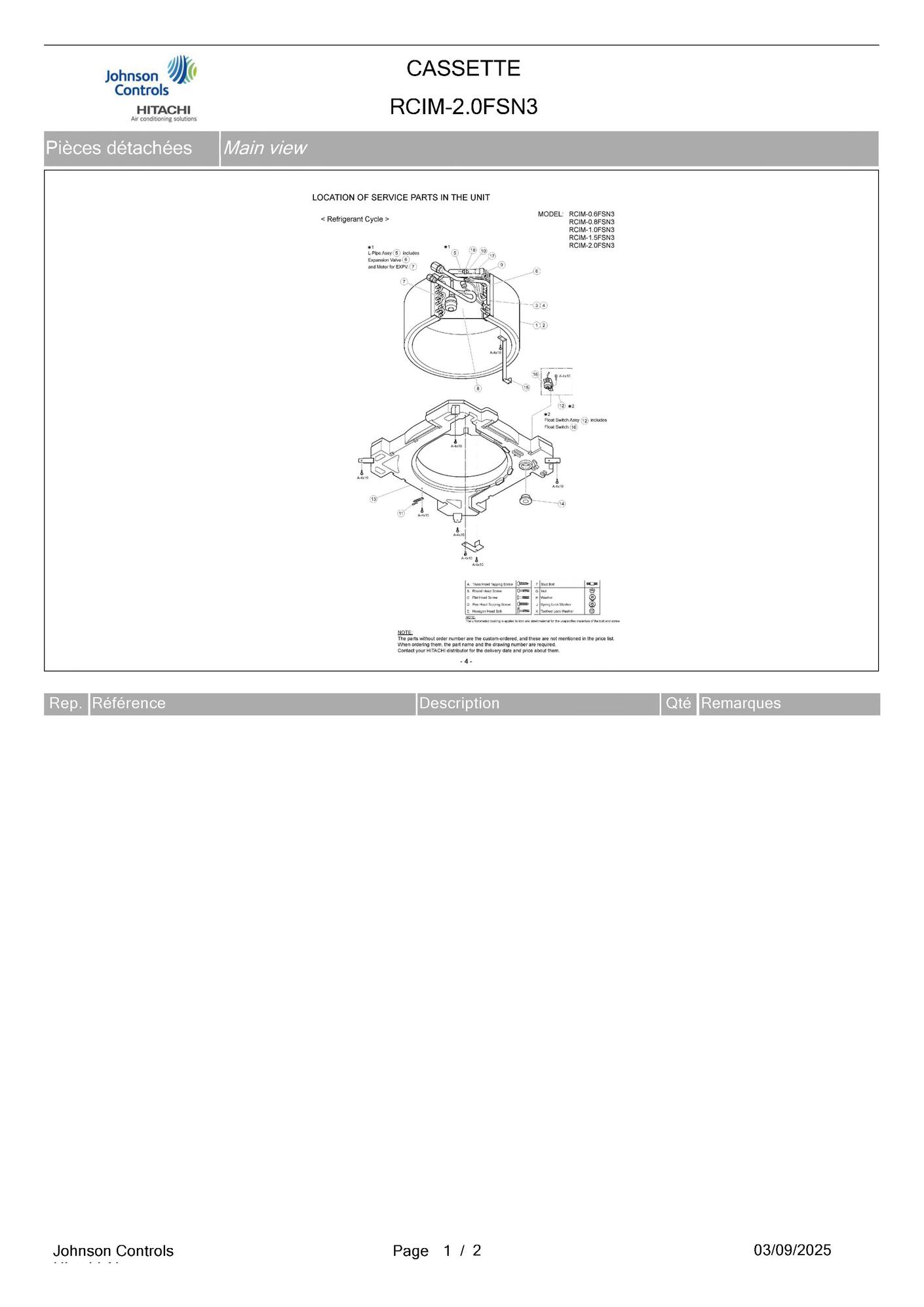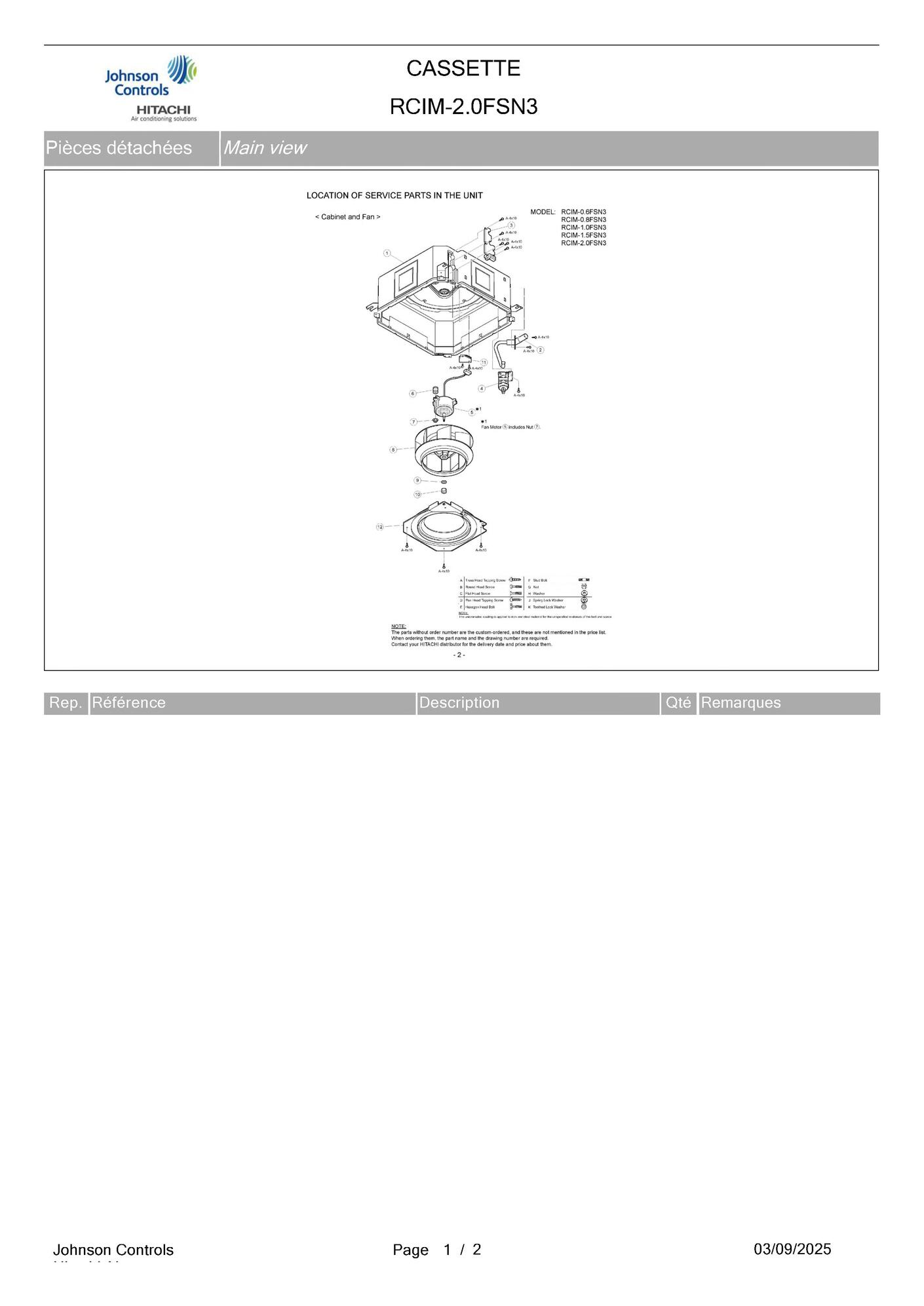 Pièces détachées contenues dans cet appareil Unité cassette Hitachi RCIM-2.0FSN3