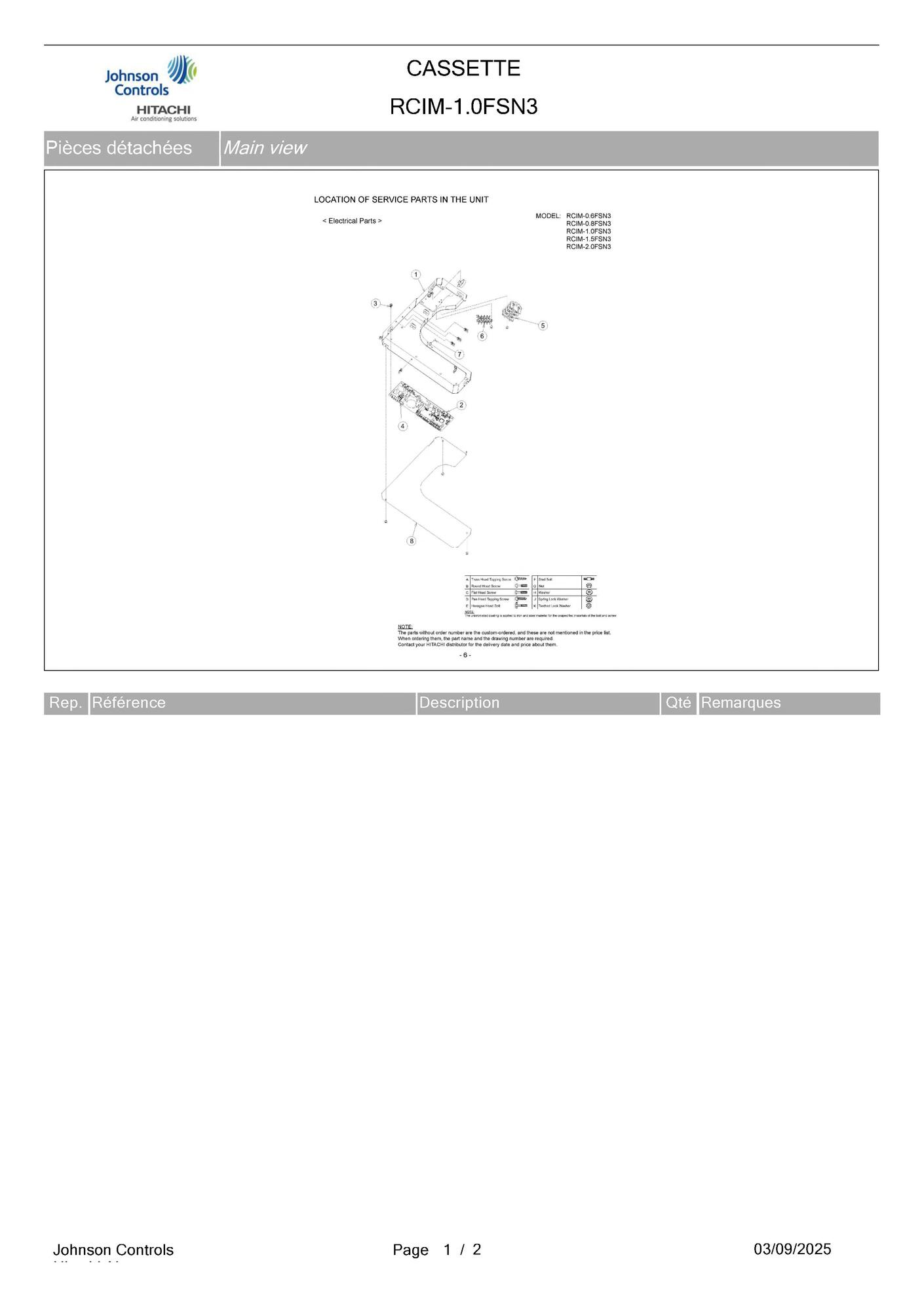 Pièces détachées contenues dans cet appareil Unité cassette Hitachi RCIM-1.0FSN3