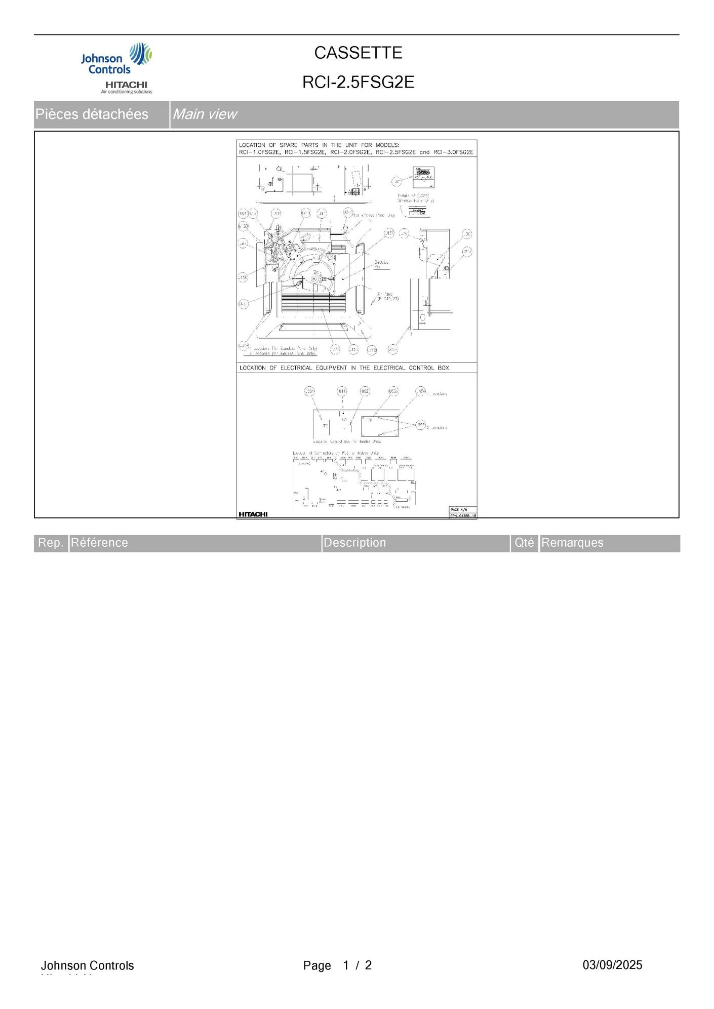 Pièces détachées contenues dans cet appareil Unité cassette Hitachi RCI-2.5FSG2E