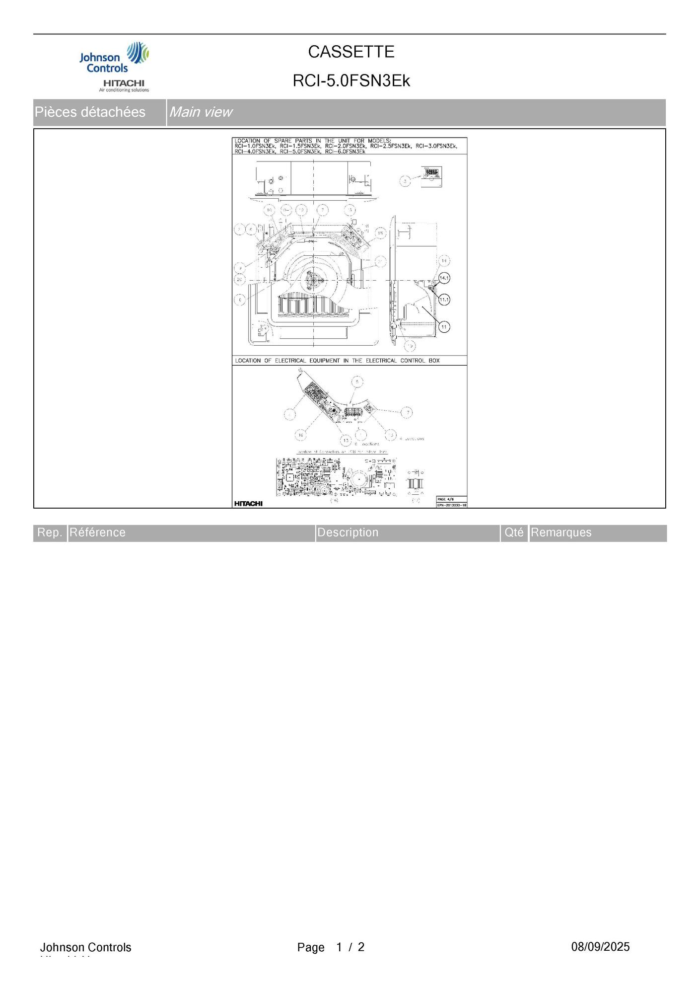 Pièces détachées contenues dans cet appareil Unité cassette Hitachi RCI-5.0FSN3Ek