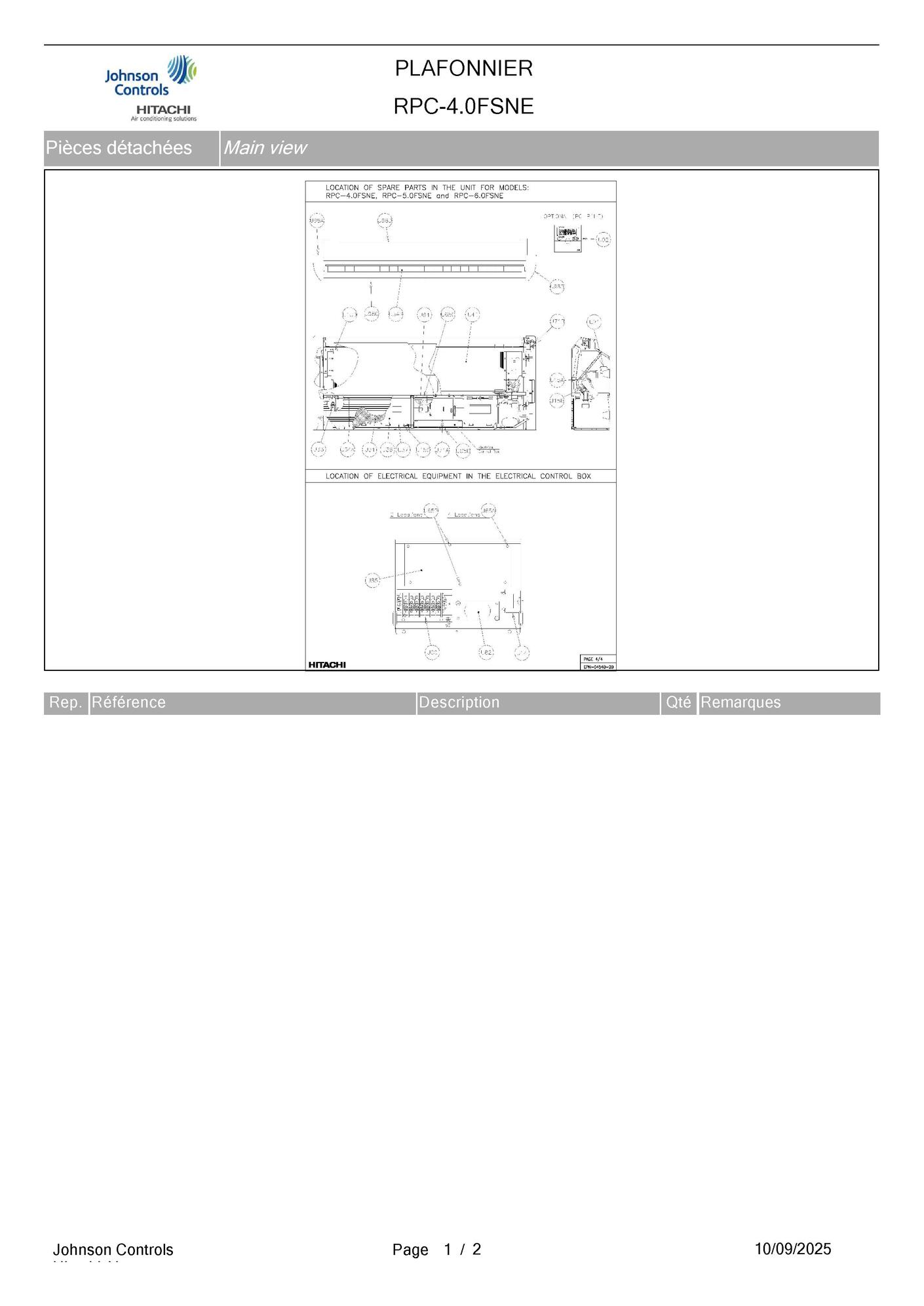 Pièces détachées contenues dans cet appareil Unité plafonnier Hitachi RPC-4.0FSNE