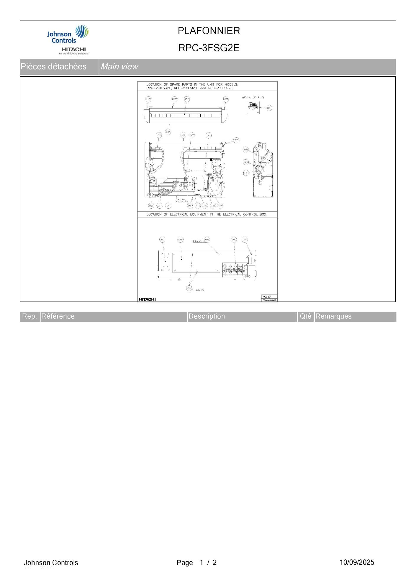 Pièces détachées contenues dans cet appareil Unité plafonnier Hitachi RPC-3FSG2E