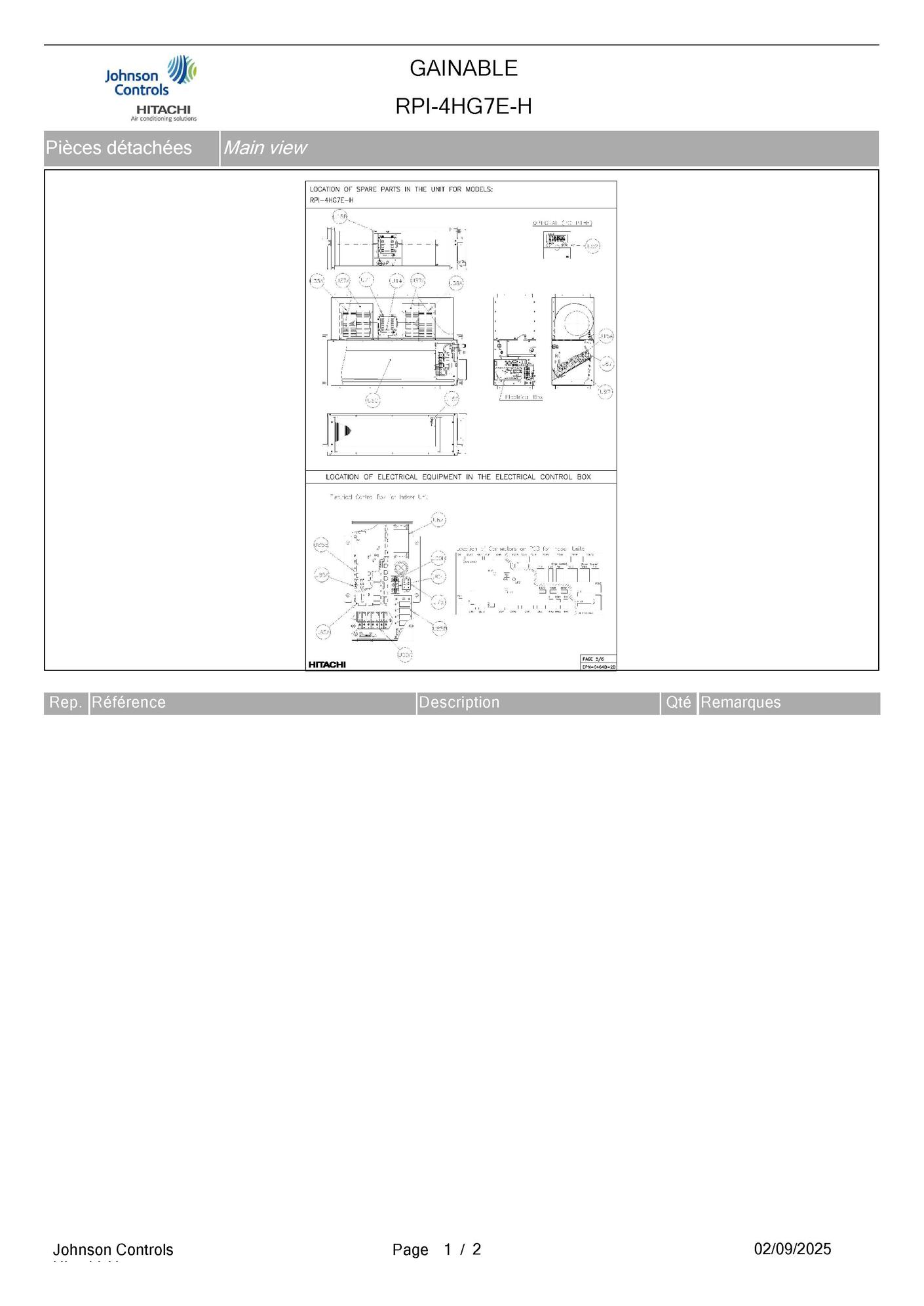 Pièces détachées contenues dans cet appareil Unité gainable Hitachi RPI-4HG7E-H