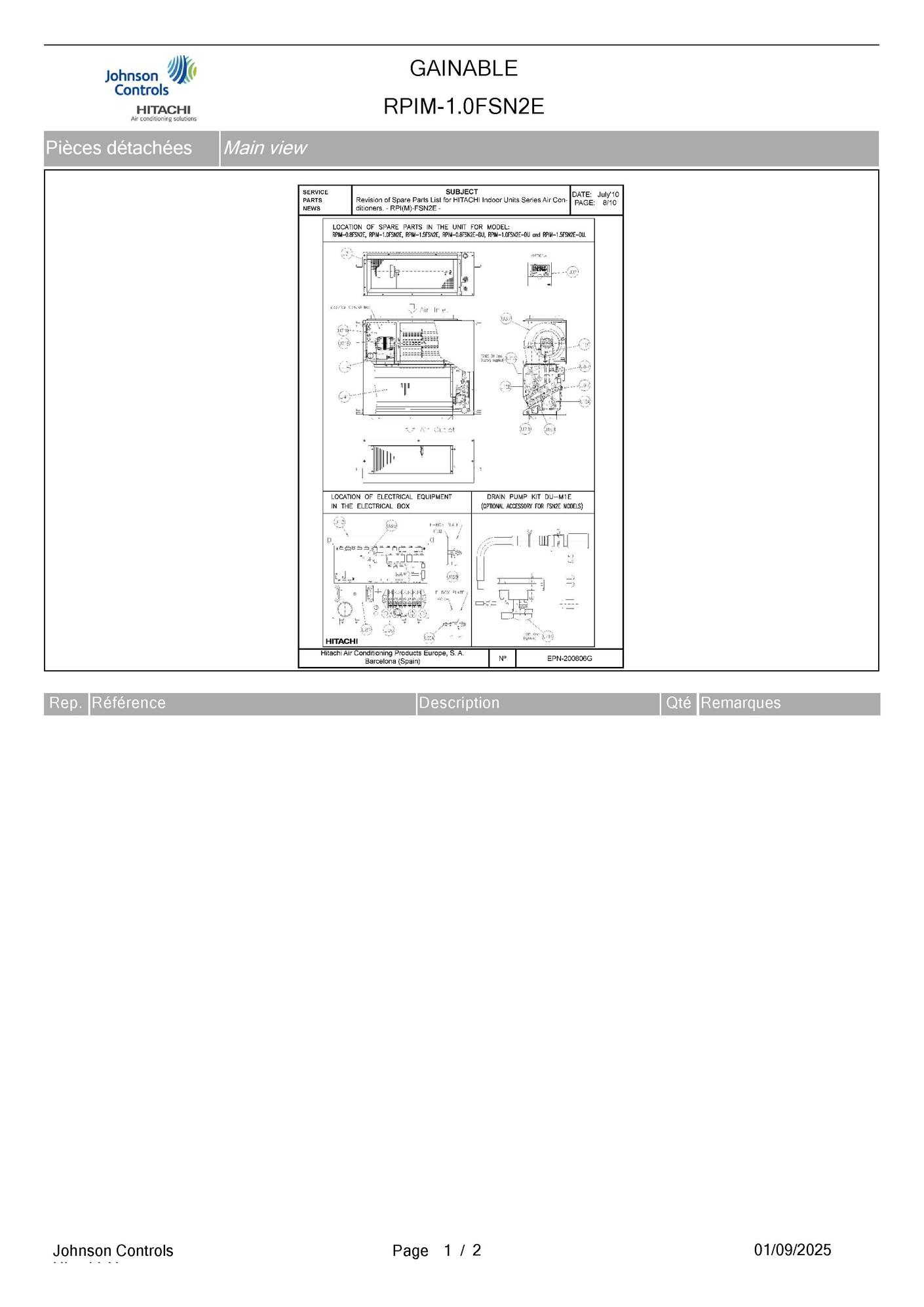 Pièces détachées contenues dans cet appareil Unité gainable Hitachi RPIM-1.0FSN2E