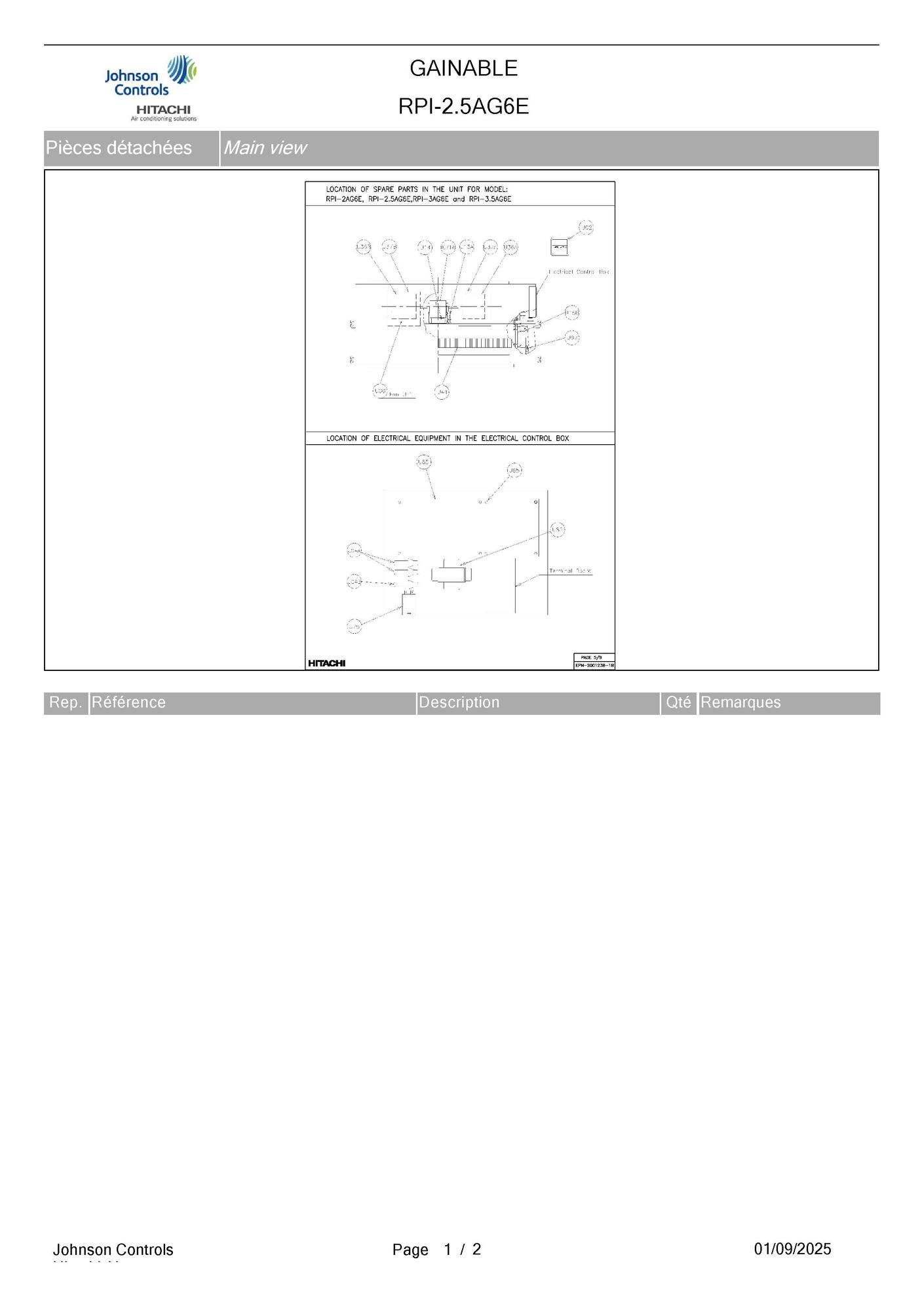 Pièces détachées Unité gainable Hitachi RPI-2.5AG6E chez Pièces Express