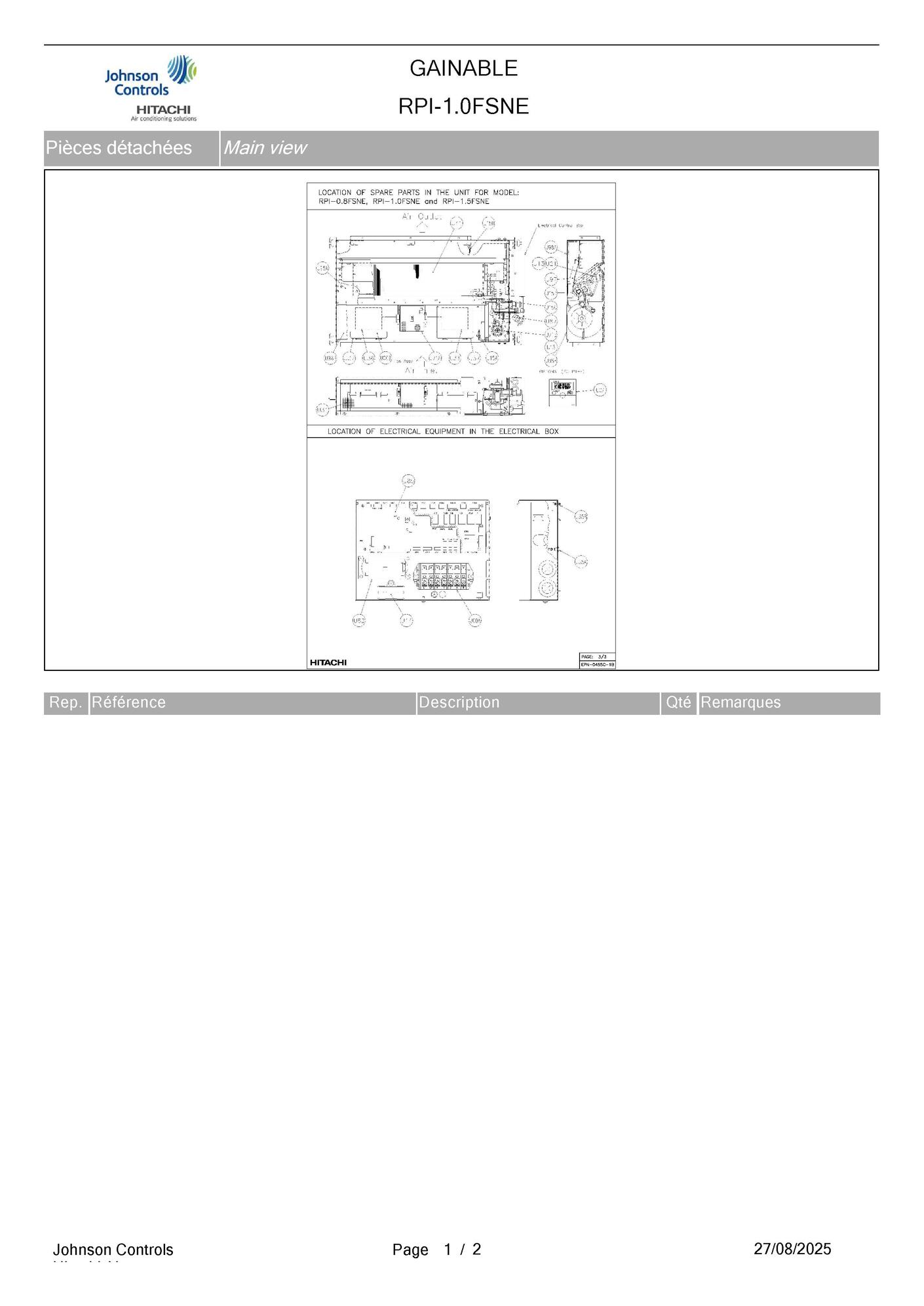Pièces détachées contenues dans cet appareil Unité gainable Hitachi RPI-1.0FSNE