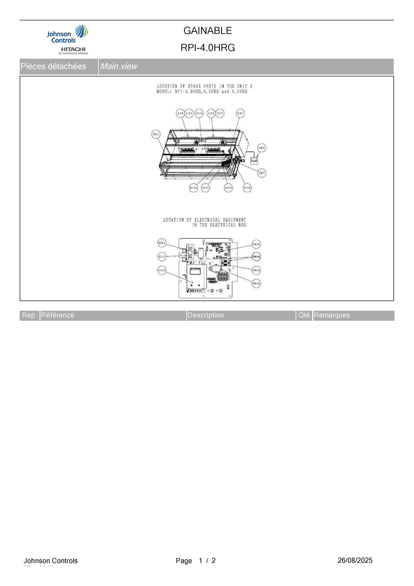 Pièces détachées Unité gainable Hitachi RPI-4.0HRG chez Pièces Express