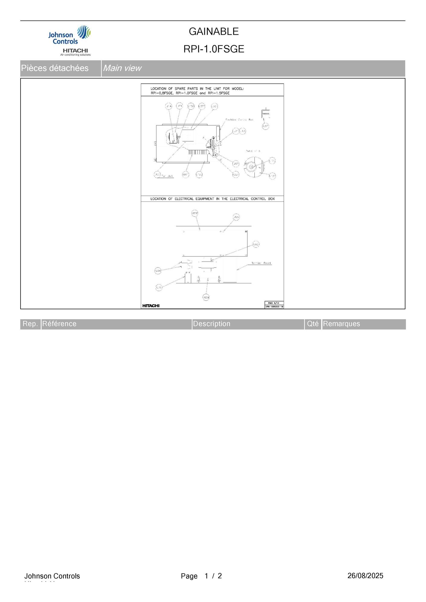 Pièces détachées Unité gainable Hitachi RPI-1.0FSGE chez Pièces Express