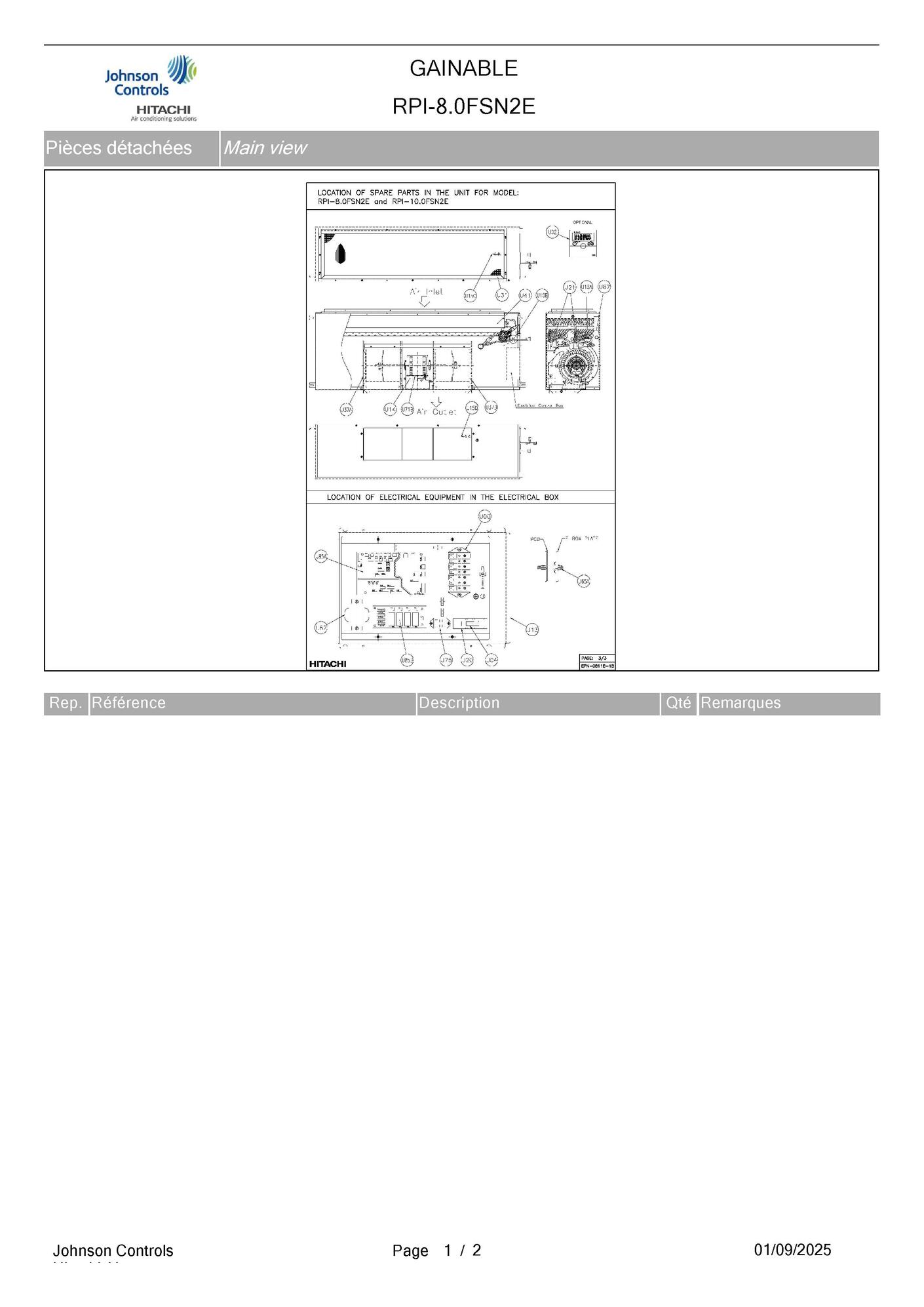 Pièces détachées contenues dans cet appareil Unité gainable Hitachi RPI-8.0FSN2E