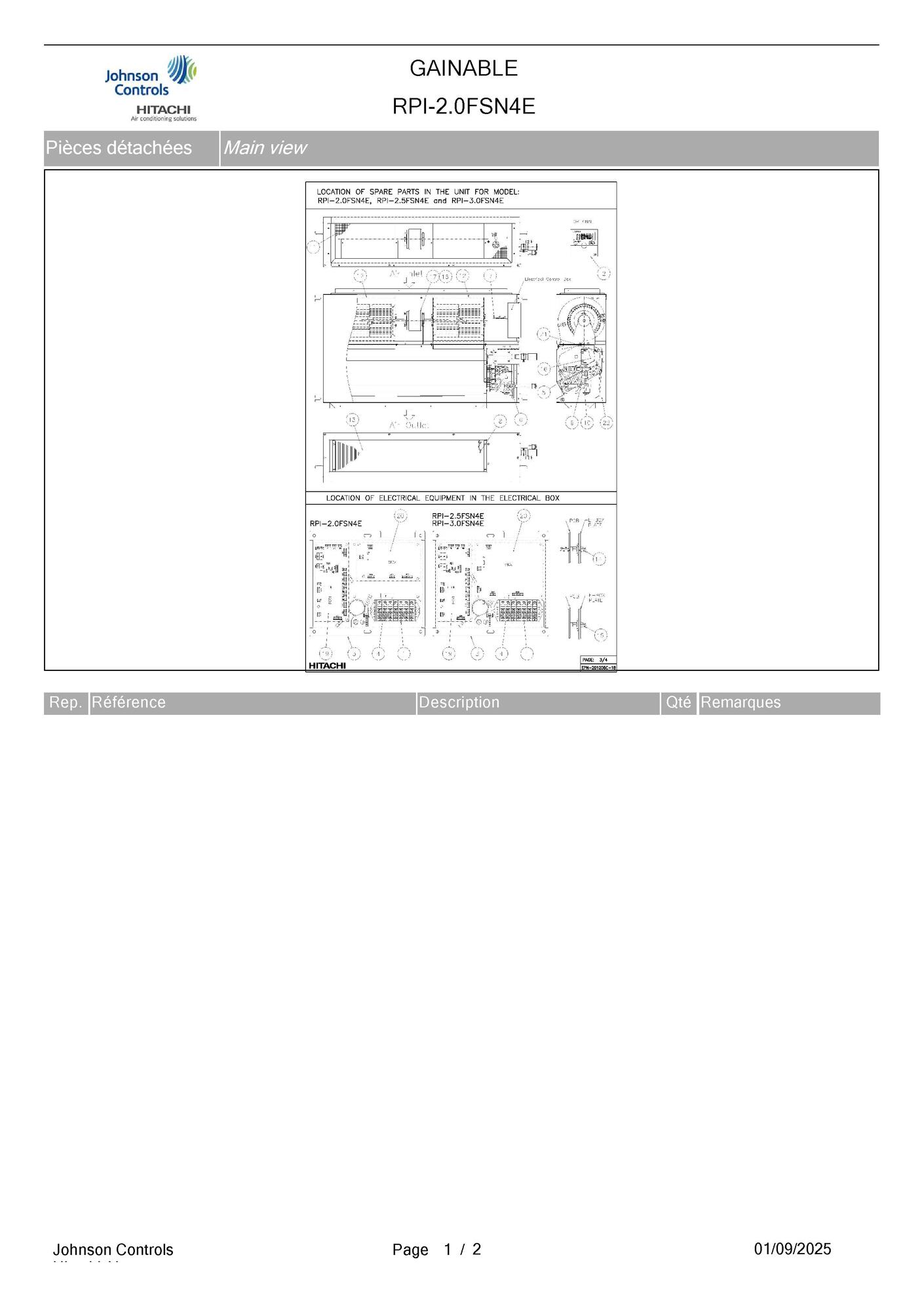 Pièces détachées contenues dans cet appareil Unité gainable Hitachi RPI-2.0FSN4E