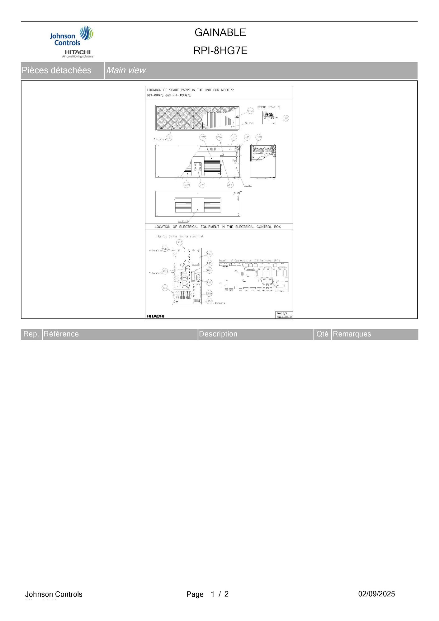 Pièces détachées contenues dans cet appareil Unité gainable Hitachi RPI-8HG7E