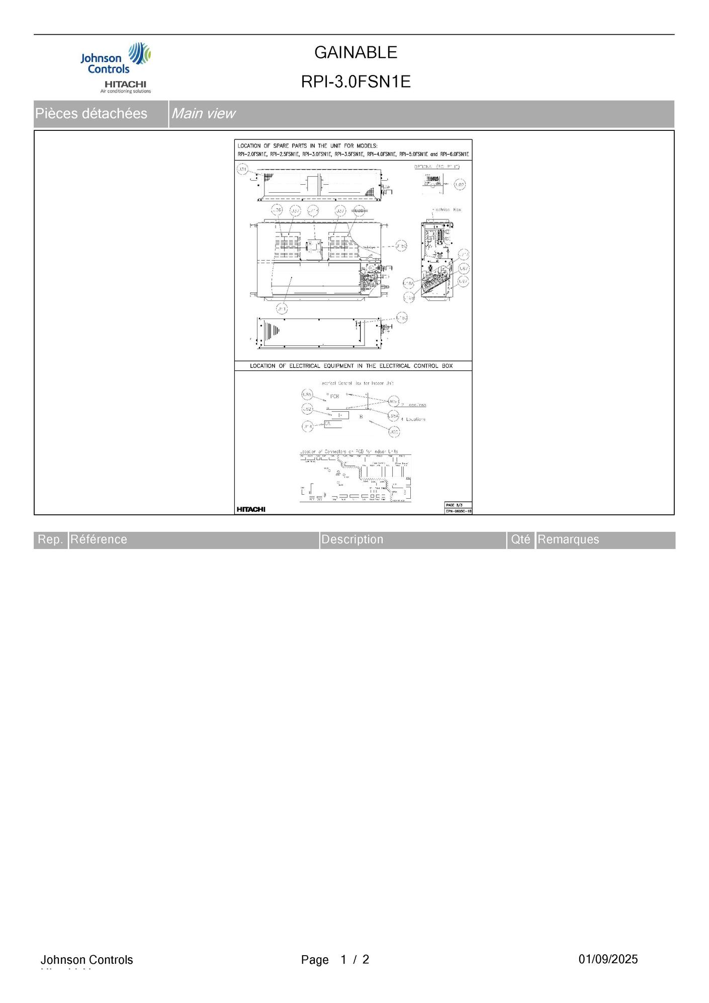 Pièces détachées contenues dans cet appareil Unité gainable Hitachi RPI-3.0FSG2Ei