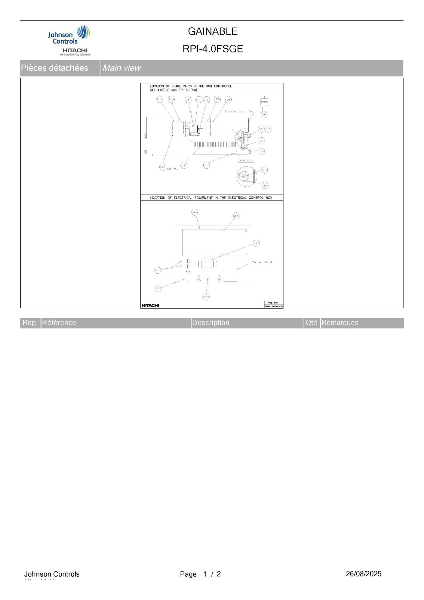 Pièces détachées contenues dans cet appareil Unité gainable Hitachi RPI-4.0FSGE