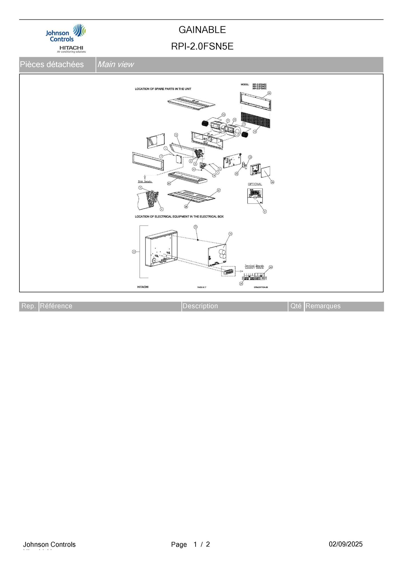 Pièces détachées Unité gainable Hitachi RPI-2.0FSN5E chez Pièces Express